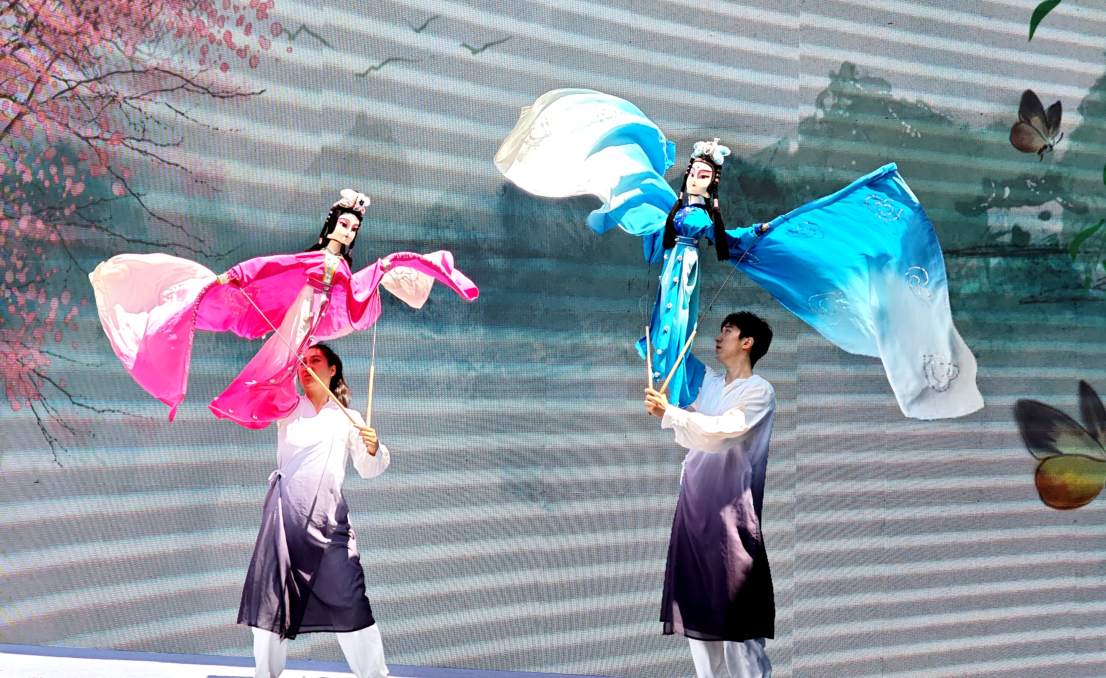 武汉杖头木偶戏《梁祝》演出现场。记者何晓刚 摄