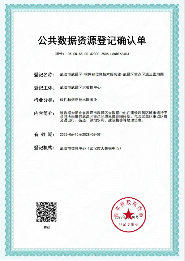 “以前很多企业和机构不知道有什么公共数据、数据在哪、怎么获得,通过登记公共数据资源,就可以畅通供需渠道。”武昌区经科局(数据局)数据资源科负责人肖振亚介绍,武昌区重点区域三维地图数据资源获得登记确认单后,就可在保证数据安全的前提下,以共享、开放、授权运营三种形式,供给于需求部门和企业,“例如,通过武昌区授权的数据运营公司,低空经济企业无需重复搜集,就能获取区域三维地图数据,催生更多应用场景;智能网联汽车企业也可以将公共交通数据与企业自有数据融合,为研发提供更加完备、准确的数据集。”