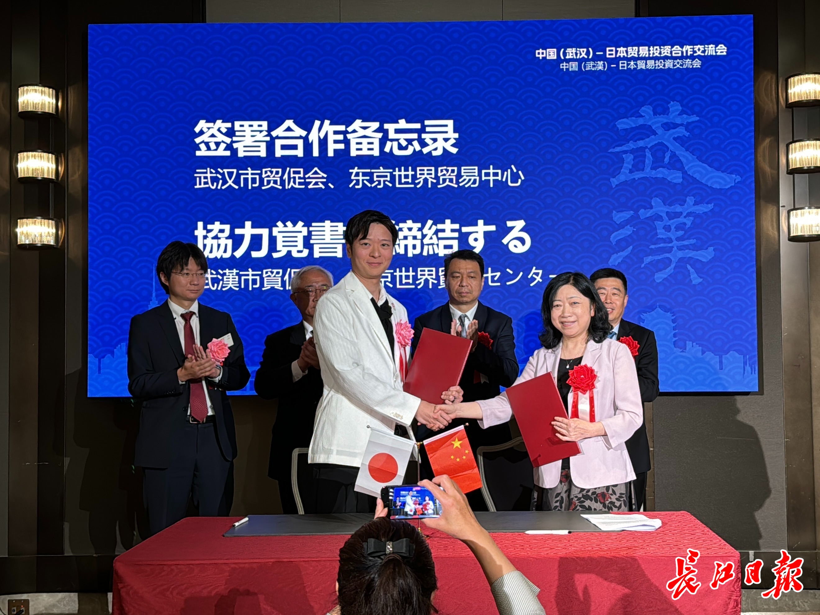 长江日报大武汉客户端6月20日日本大阪讯(特派记者吴婕)6月19日,中国(武汉)—日本贸易投资合作交流会在日本大阪成功举办。武汉市贸促会与东京世界贸易中心签署合作备忘录,双方将在提供贸易、投资及经济合作相关信息等方面展开合作,此举标志着双方在经贸合作上迈出实质性步伐。