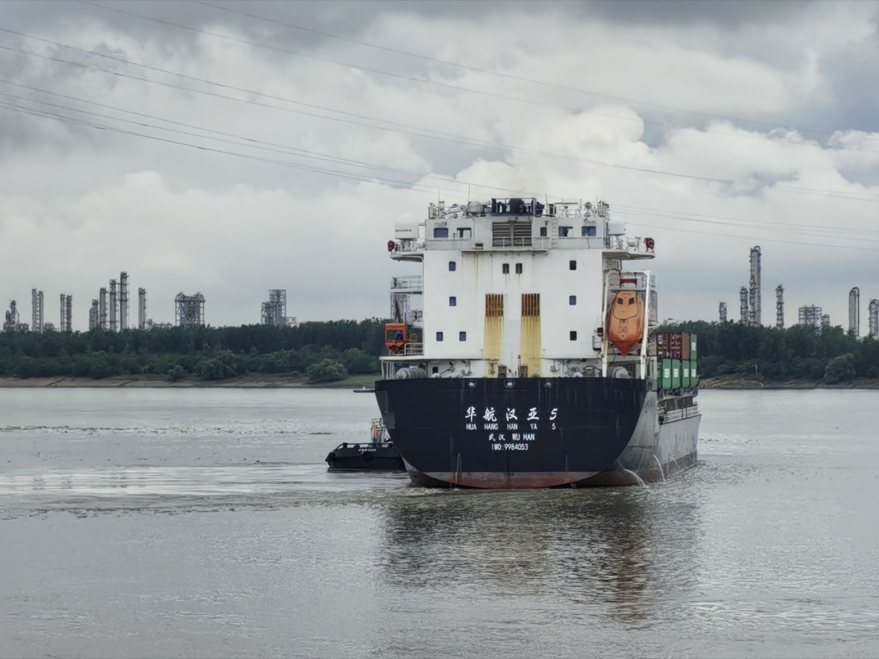 17时,在汉口边检站民警完成登船检查后,“华航汉亚5”轮缓缓驶离阳逻港泊位,这艘船穿越长江水道后,将沿着我国海岸线一路南下,直抵南洋。