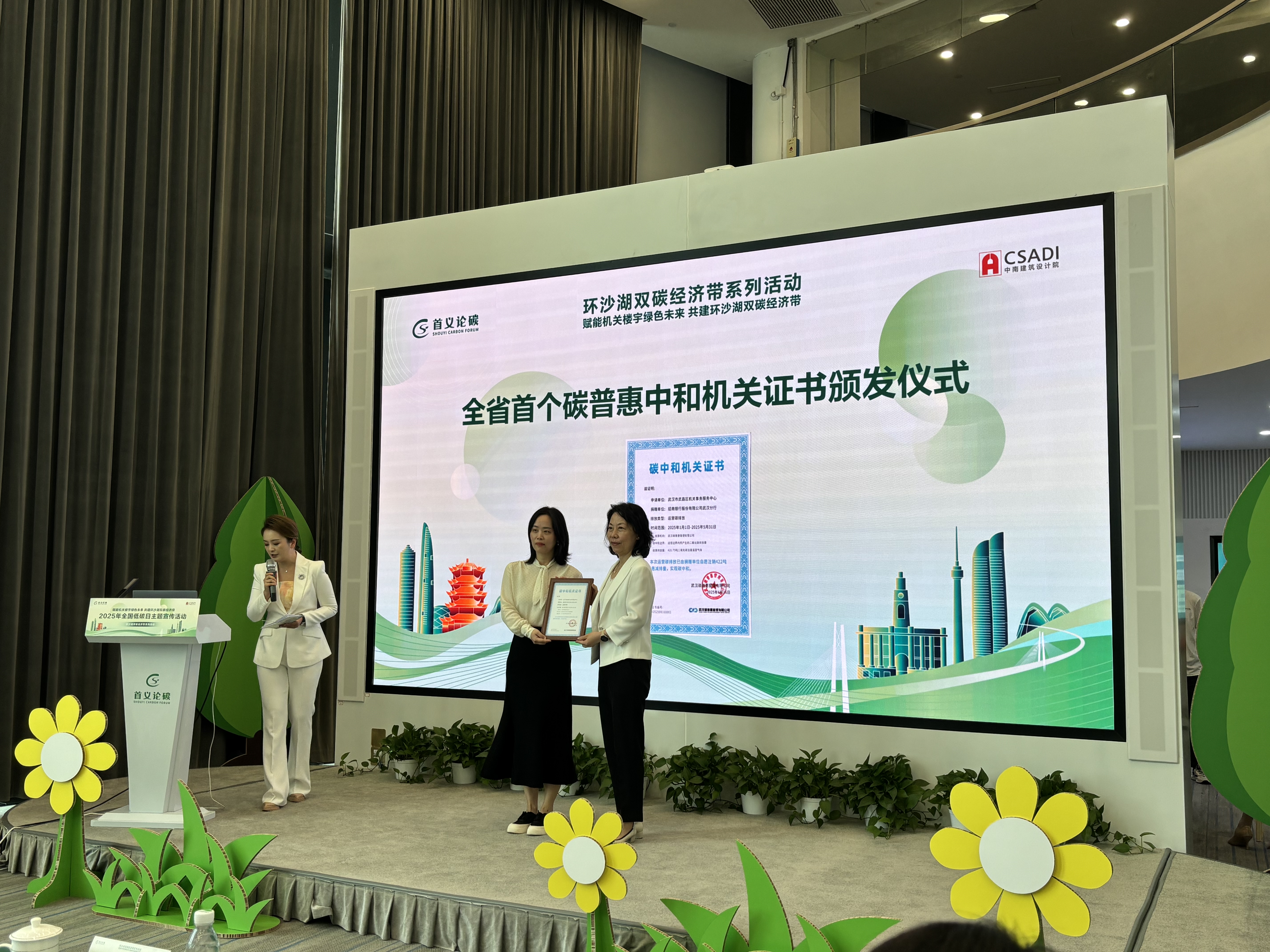 武昌区机关事务服务中心获得全省首个碳普惠中和机关证书。栾嘉雯 摄