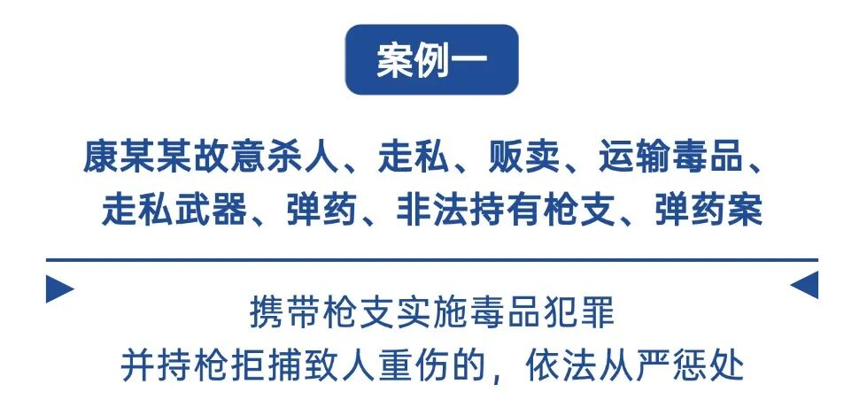 本案中被告人康某某不仅介绍并伙同他人走私毒品和枪支弹药,还贩卖并组织人员携带枪支长途运输毒品,在面对公安人员检查时开枪拒捕,造成一名辅警重伤,人身危险性极大,罪行极其严重,人民法院依法对其适用死刑。本案的典型意义在于,向社会公众展示毒品犯罪的严重社会危害性,以及人民法院从严打击毒品犯罪的坚定决心和打击重点,有力震慑涉毒犯罪分子。