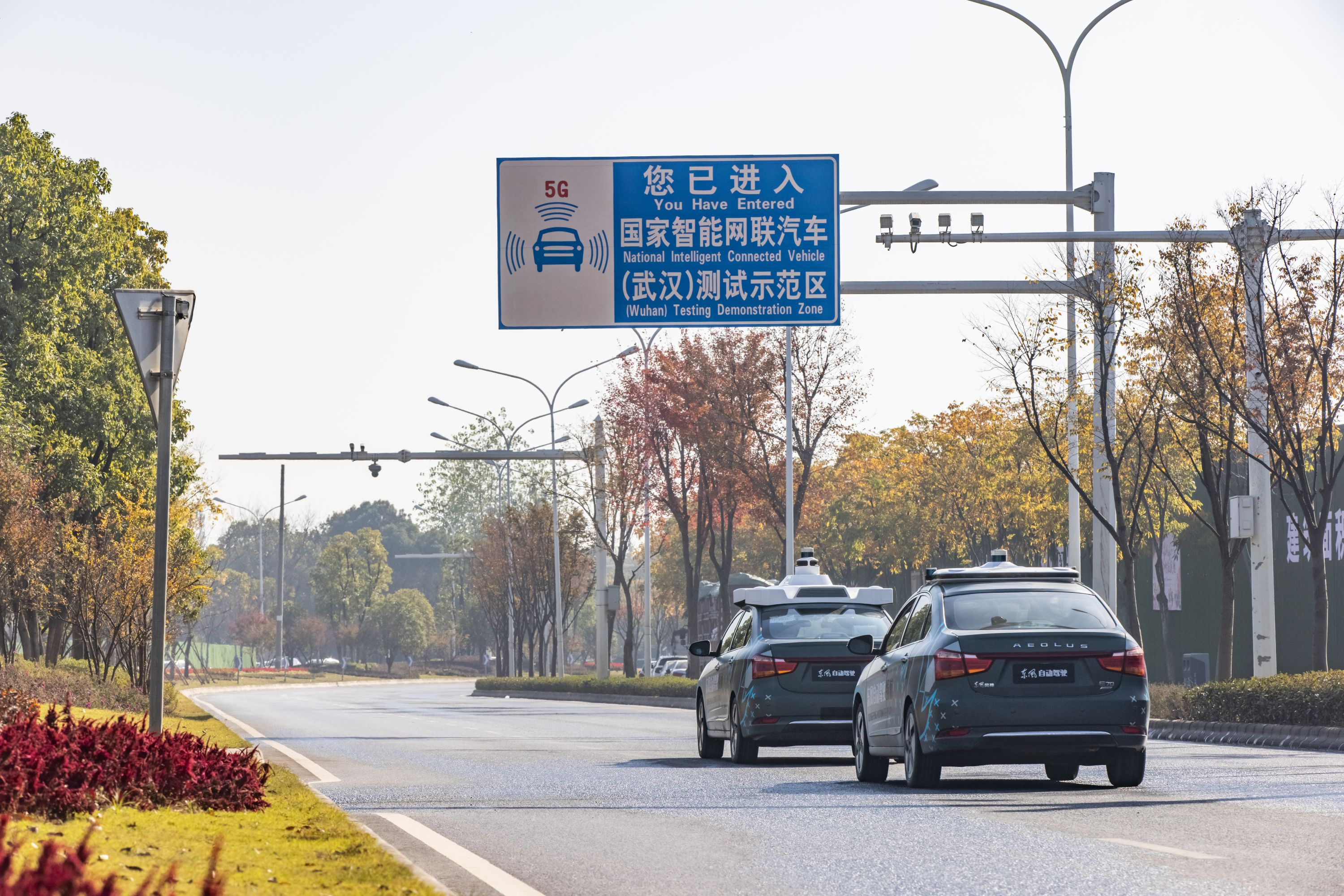 在武汉国家智能网联汽车基地行驶的自动驾驶车辆。通讯员李岿 摄