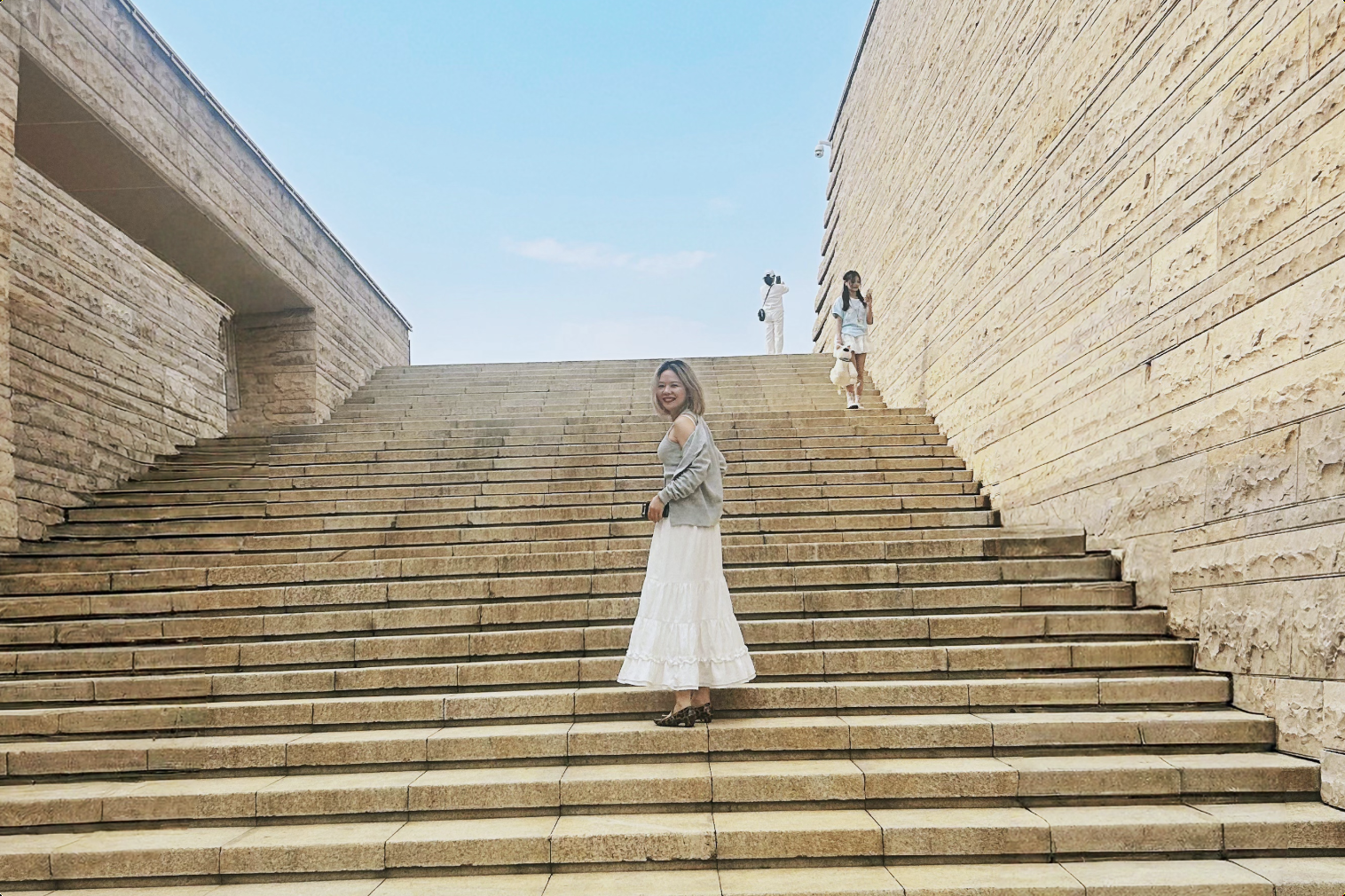 记者在盘龙城“网红台阶”打卡。