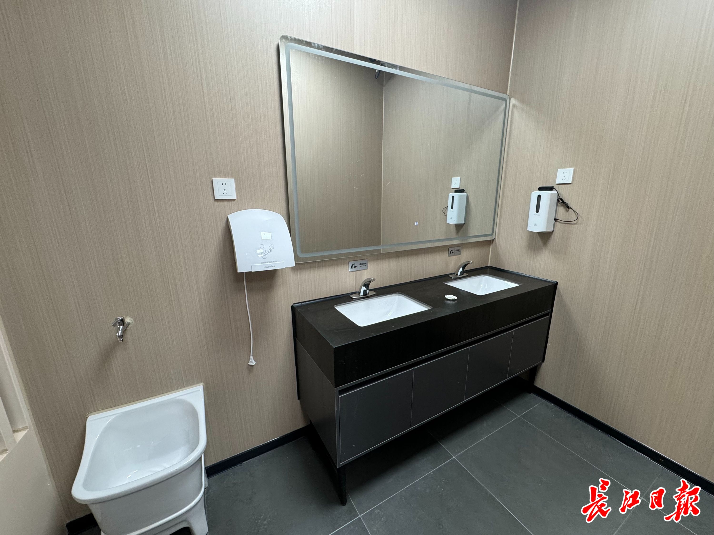 男女厕均配置了洗手台、感应洗手液、烘干机等。记者陶常宁摄