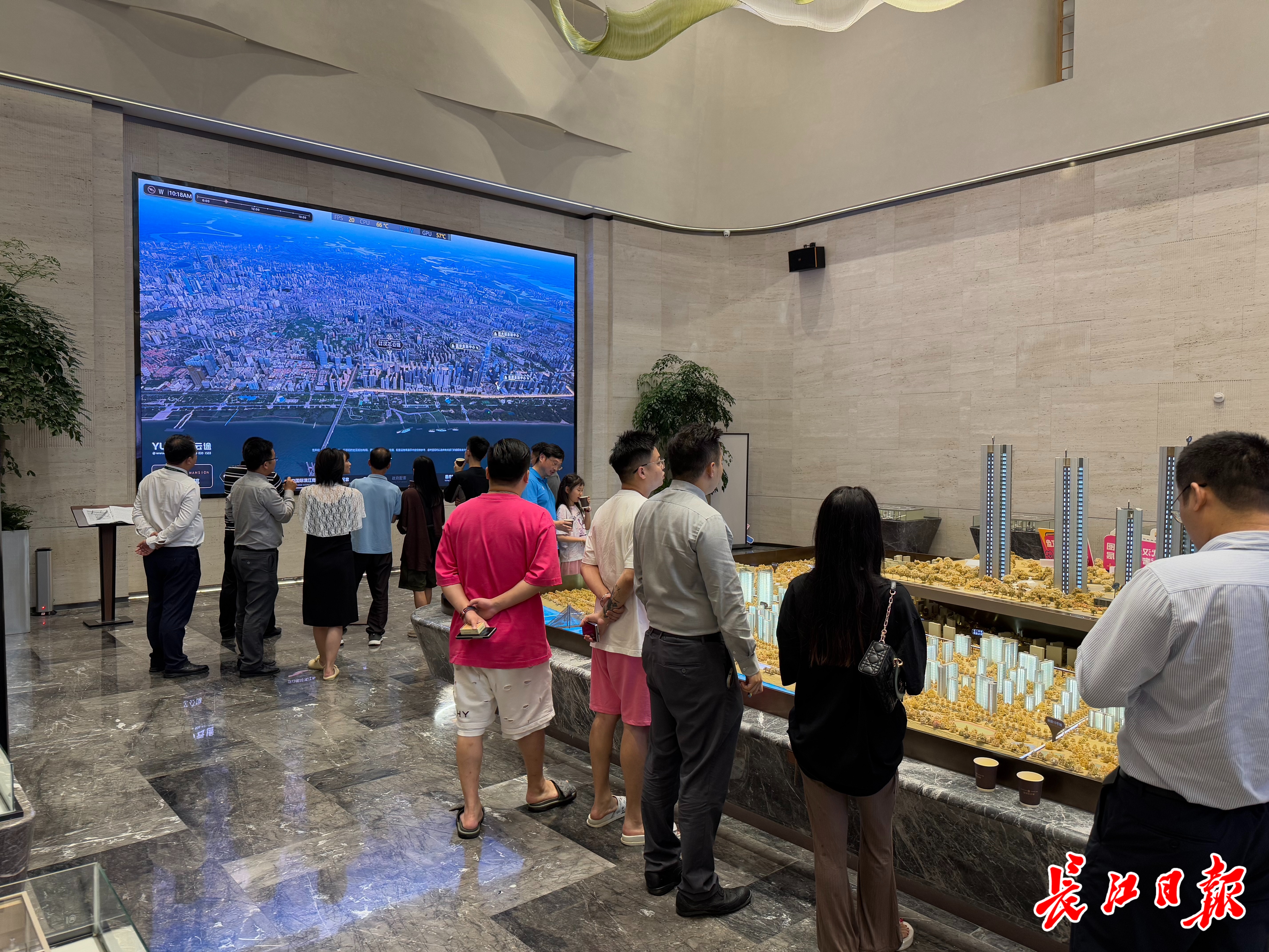 7日中午,在位于武汉二七滨江板块的中建壹品汉芯公馆项目长江日报记者看到,营销中心内来咨询、看房的人络绎不绝。陈小梅手持激光笔,同时为3组客户讲解项目优势。