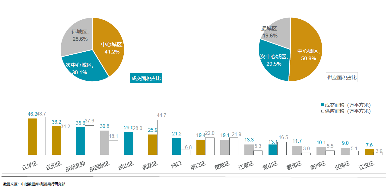 同时,数据还显示,上半年武汉商品住宅市场总成交面积328.2万平方米,同比上升约2.2%;平均成交价格15636元/平方米,较2024年也有所上涨。分区域来看,中心城区占成交面积的41.2%,占供应面积的50.9%,其中江岸、汉阳、东湖高新三区领跑。