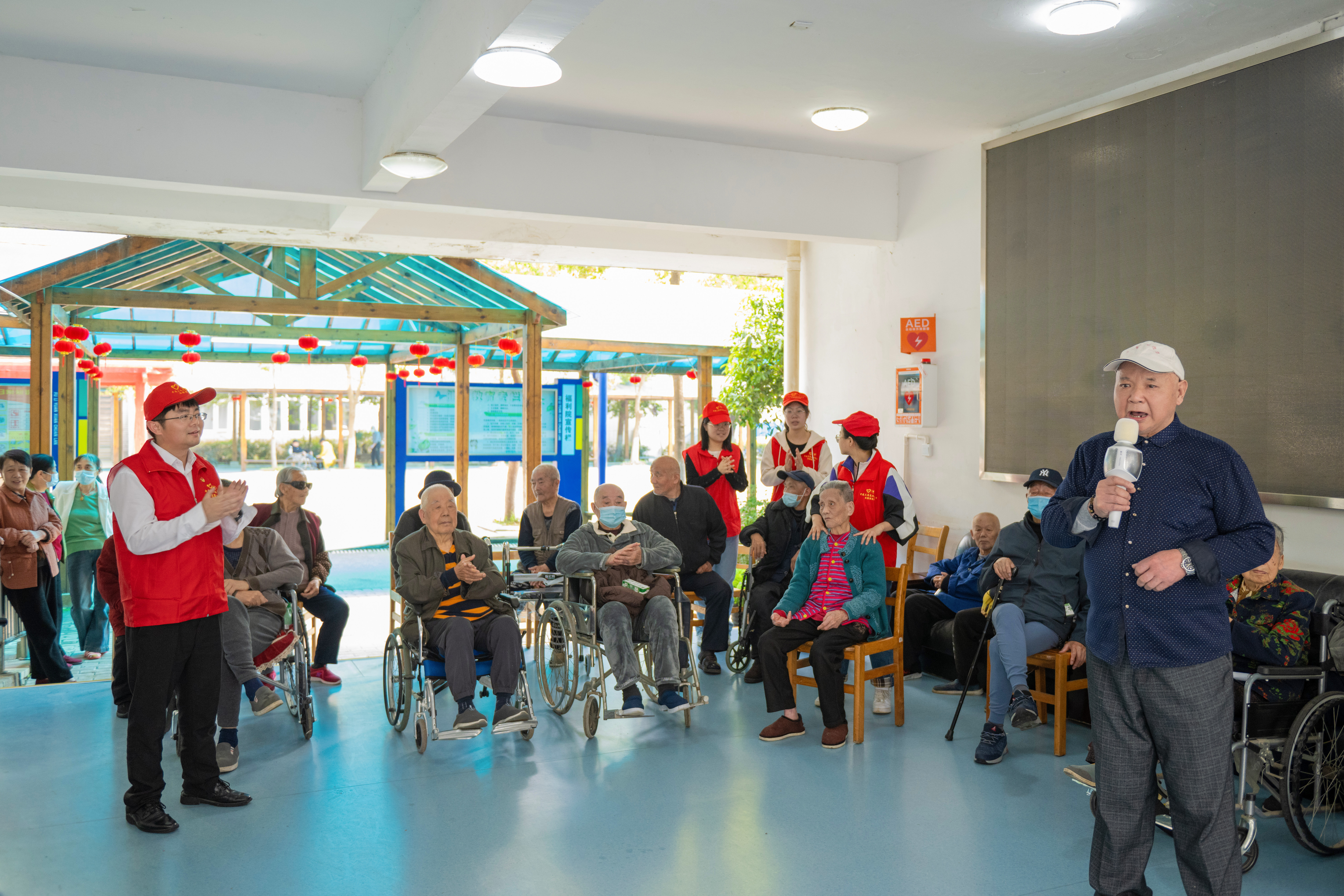 潘思名(左前)在佛祖岭福利院开展志愿服务。