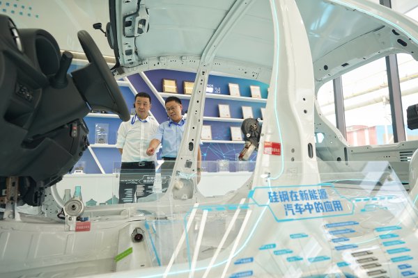 展示厅内展示硅钢在新能源汽车上的应用。 肖僖 摄