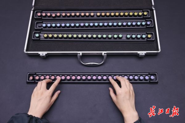 在光品质与颜色视觉联合实验室,刘强教授团队成员做色相棋颜色辨别实验。记者 胡冬冬 摄