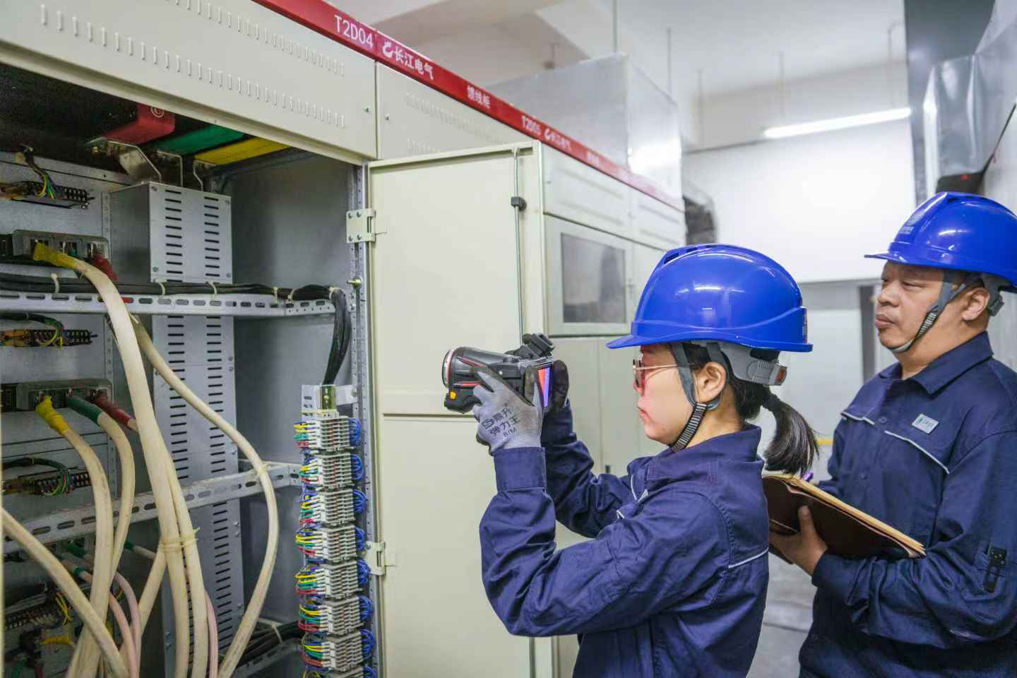 在厂区10千伏配电房,武汉经开区供电公司客户经理吴杰、马彩莲正用红外测温仪检测变压器运行状态。“电缆温度56℃,在安全阈值内。”他和同事每周三次上门服务,将电网维护从产权分界点延伸至企业内部设备。
