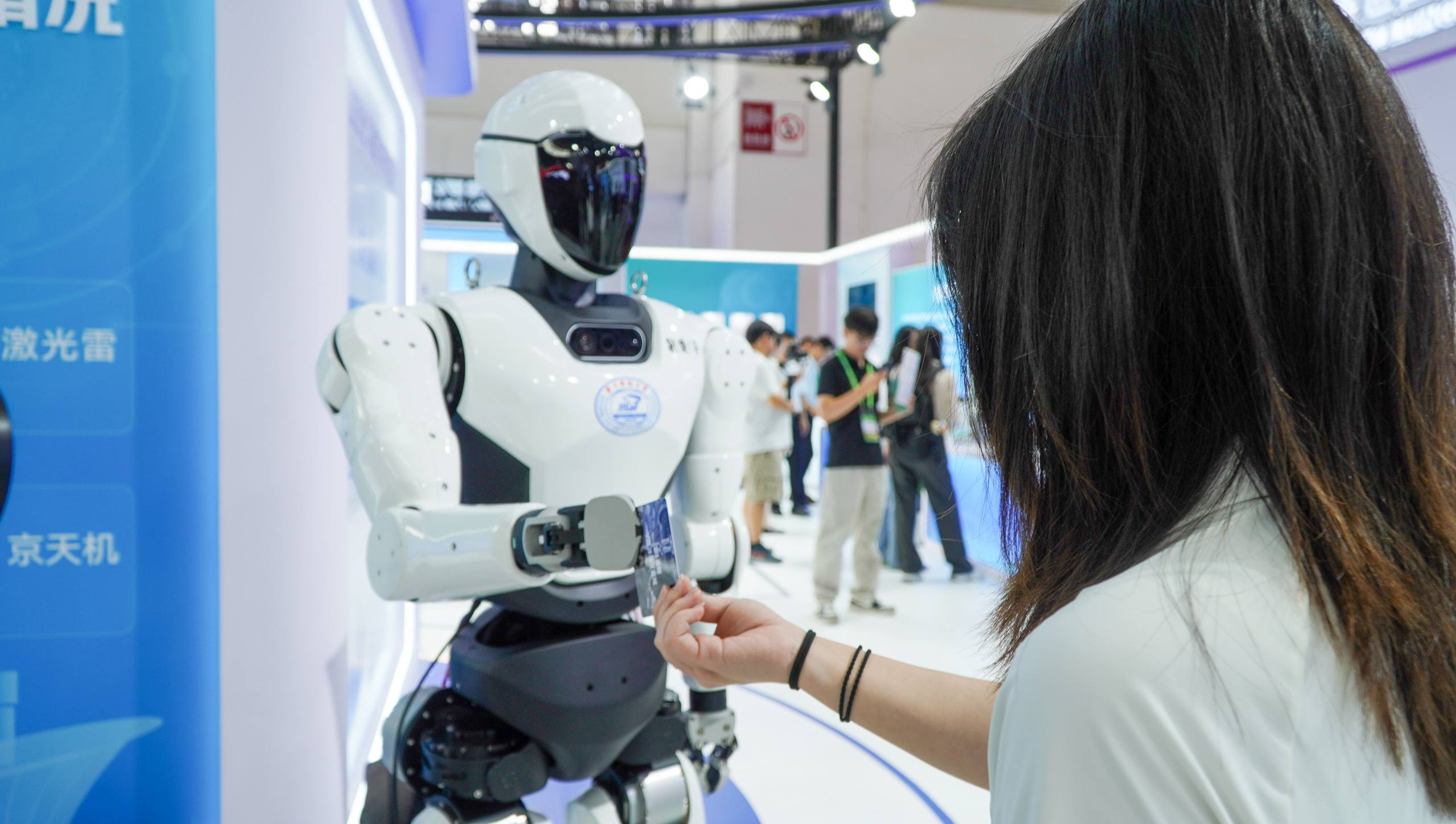 武汉光谷企业智能智造的人形机器人亮相第三届链博会。夏俊俊 摄