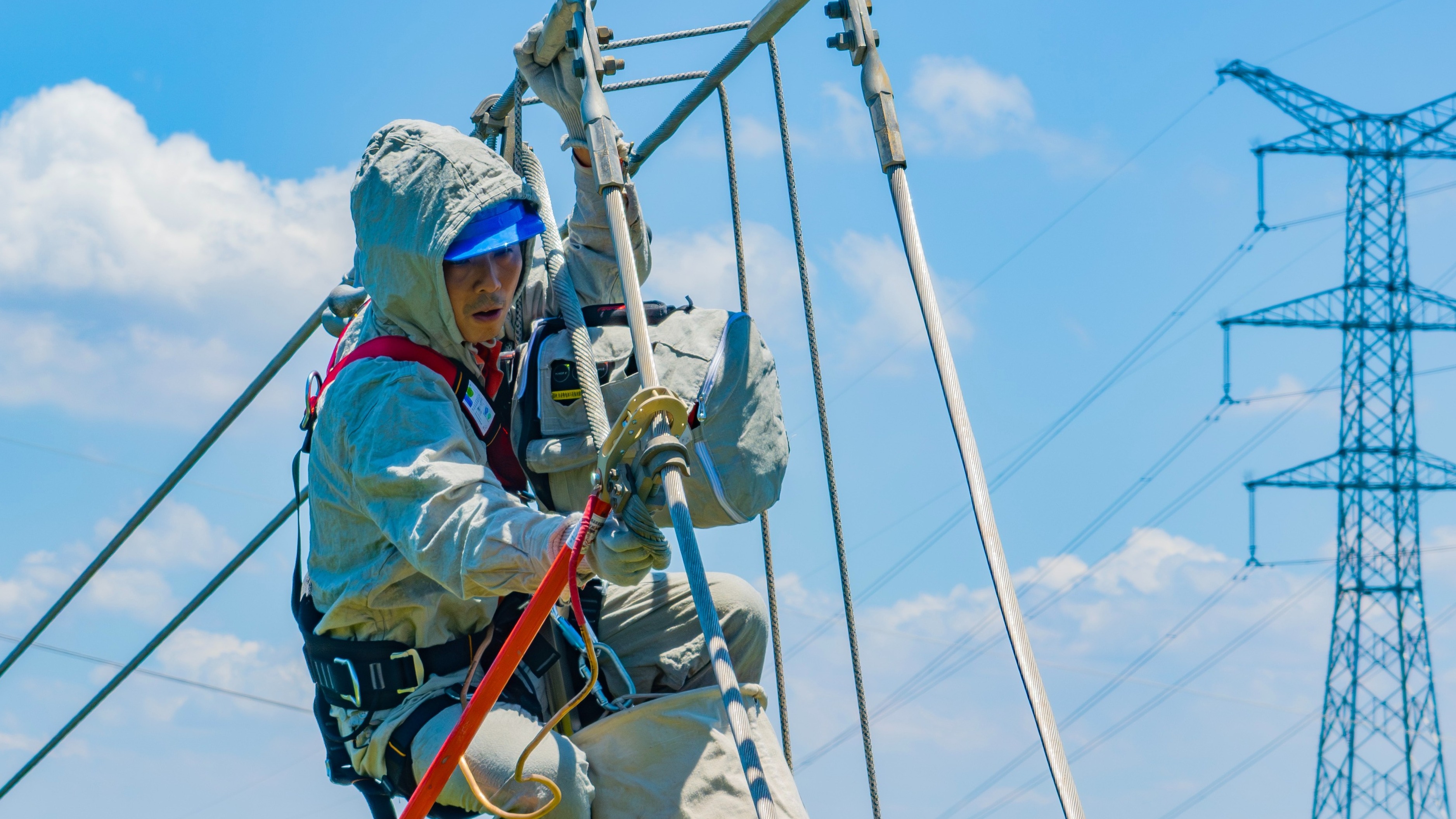 烈日下,国网武汉供电公司作业人员开展带电作业。