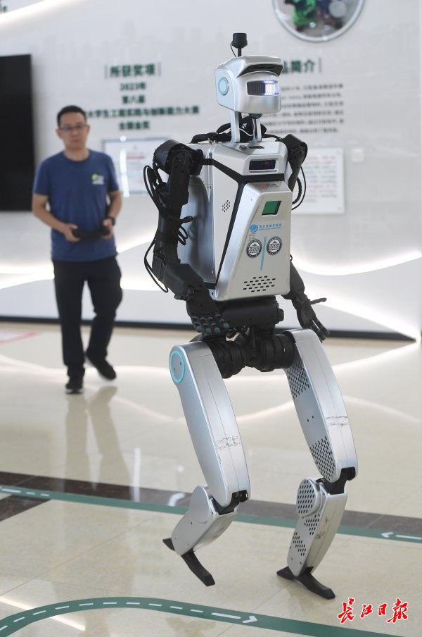 “小天”机器人在科研人员操控下稳健行走。长江日报记者 高勇 摄