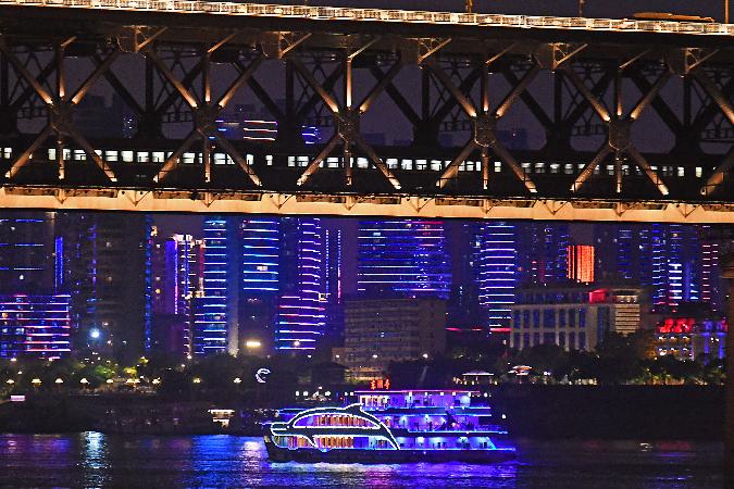 东湖号游轮驶过武汉长江大桥。记者詹松 摄