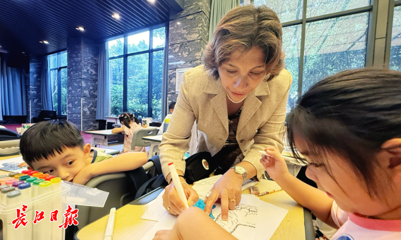 塞西莉娅·泰洛(中)与孩子们互动作画。 长江日报记者何晓刚 摄