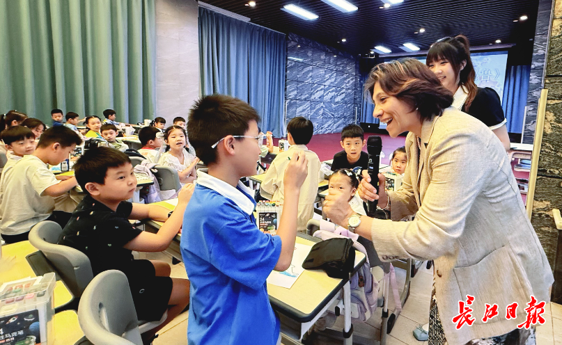 塞西莉娅·泰洛(右)与孩子们亲切交流。 长江日报记者何晓刚 摄