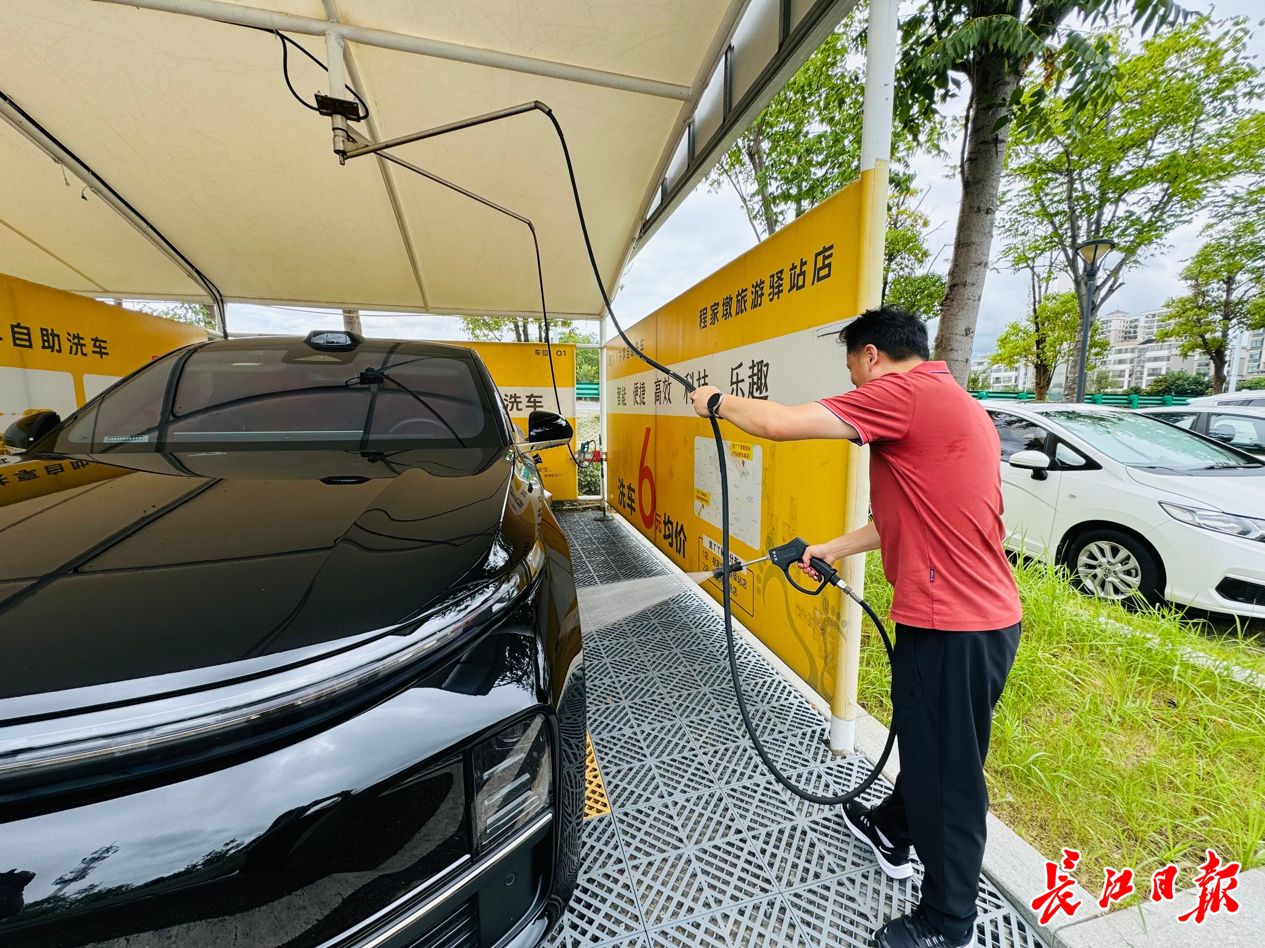 程家墩驿站可以自助洗车。 长江日报记者陶常宁 摄