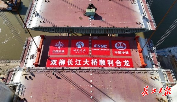 长江日报大武汉客户端7月26日讯 7月26日上午9时,阳光照耀着宽阔的长江江面和巍峨的桥塔,随着南北两岸最后一片长50米、宽6米、重达450吨的朱红色钢箱梁精准就位,由湖北交投集团投资建设,中交二航局、中铁大桥局参与施工的双柳长江大桥完成了最后一片“拼图”,顺利实现合龙。