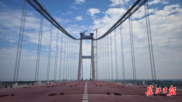 在主塔施工中,项目团队引进了新一代一体化智能筑塔机和湖北省首条钢筋网片柔性生产线,将主塔“拆分”为一块块6米高的钢筋部品,进行“搭积木”式拼接,并实现从钢筋部品制造到混凝土浇筑养护“流水线”式建造。大桥以每天近1米的速度快速“生长”,最终仅用1年便实现封顶,比计划工期提前2个月。