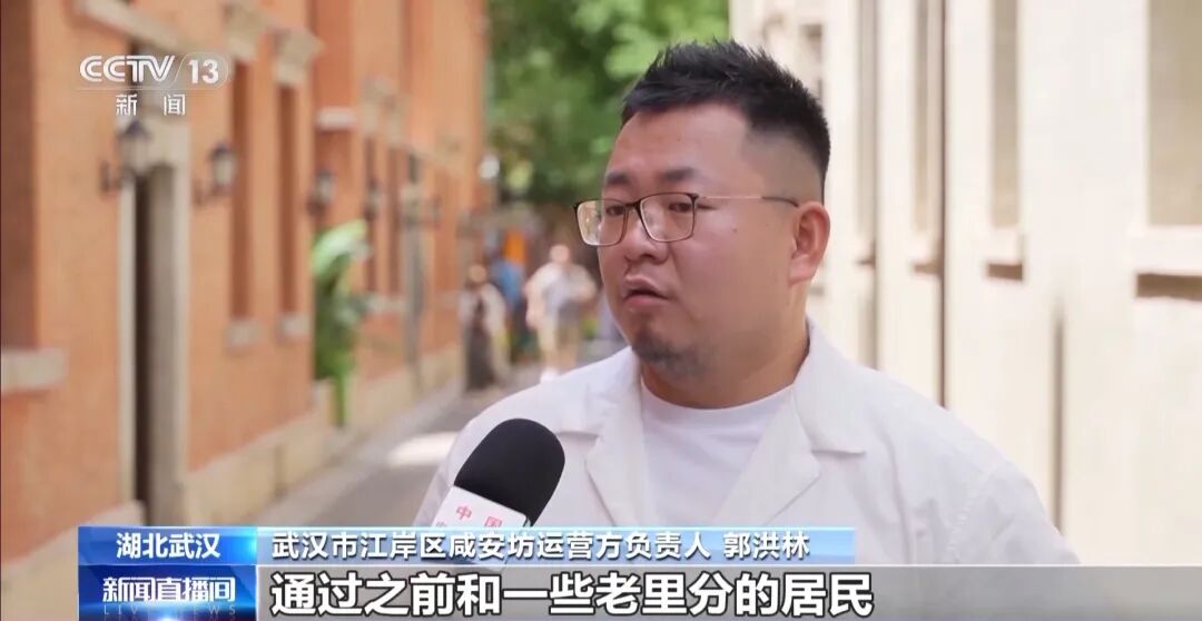 武汉市江岸区咸安坊运营方负责人 郭洪林:我们在2016年对整个片区做了比较深入的文化调研,通过之前和一些老里分居民进行沟通,查了一些历史文献。按照国家的这样一个城市更新的大方针,以历史传承包括保护和发展的理念,进行了整体的修旧如旧的规划和修缮工作。咸安坊它不光是一个建筑的样本,更多的我觉得是一种里分文化的一个传承在里面。