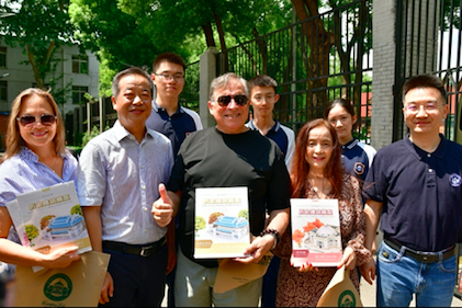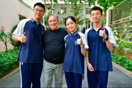 格林与武大附中三名高中生合影。杨小宇 摄