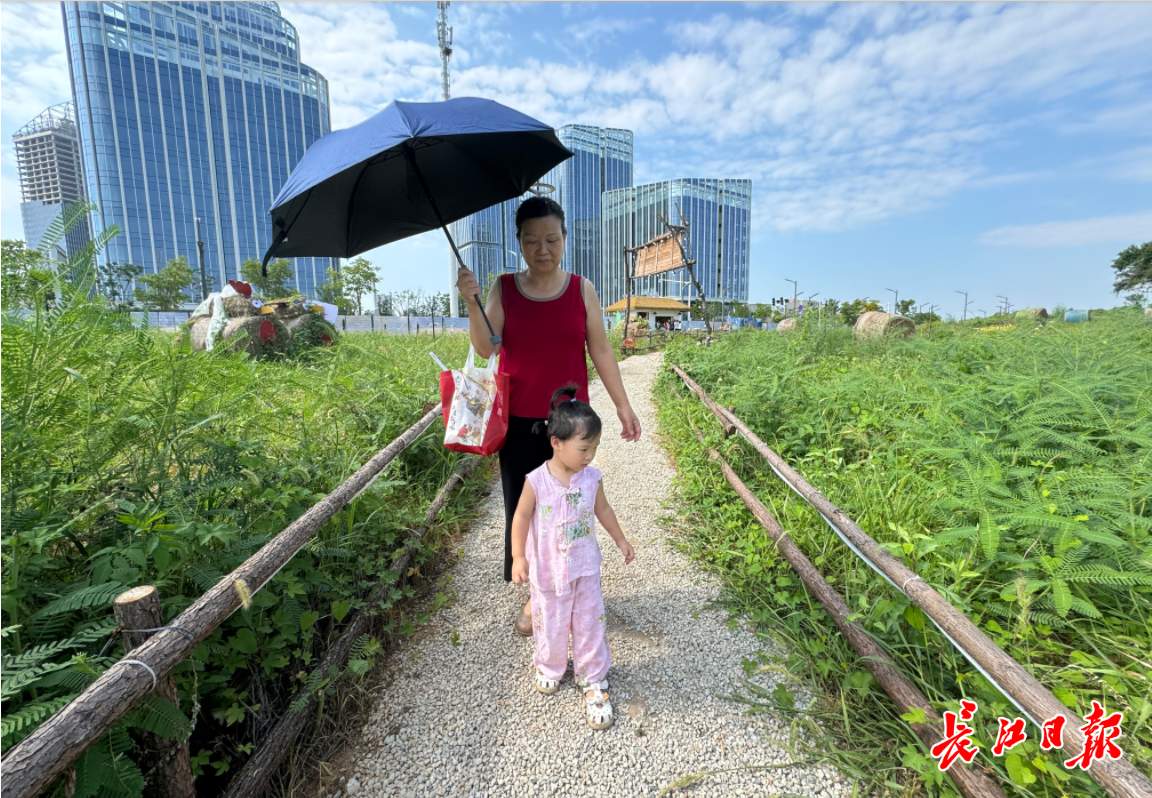 7月28日,长江日报记者来到星空农场,农场位于武汉经开区郭徐岭大半岛后官湖岸边。家住联投半岛小区的胡正仙带着小孙女路过,“以前这里都是荒地,什么都没有,现在环境大变样了!”