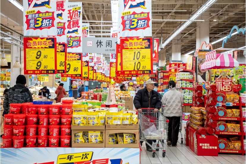▼2025年1月,上海,大润发超市低价风暴促销,年货商品丰富,吸引顾客购买商品。图/视觉中国
