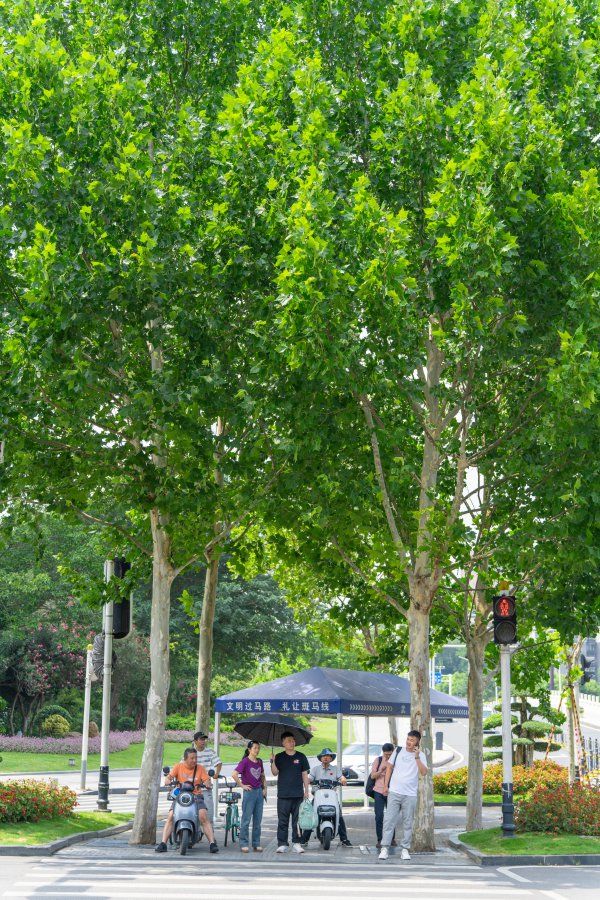 18日,长江日报记者在东湖路双湖桥路口看到,渠化岛上种植了12株法桐,形成森林式林荫路口。站在树荫下等绿灯的小伙子方宁说:“真凉快,希望武汉多一些这样的林荫路口。”