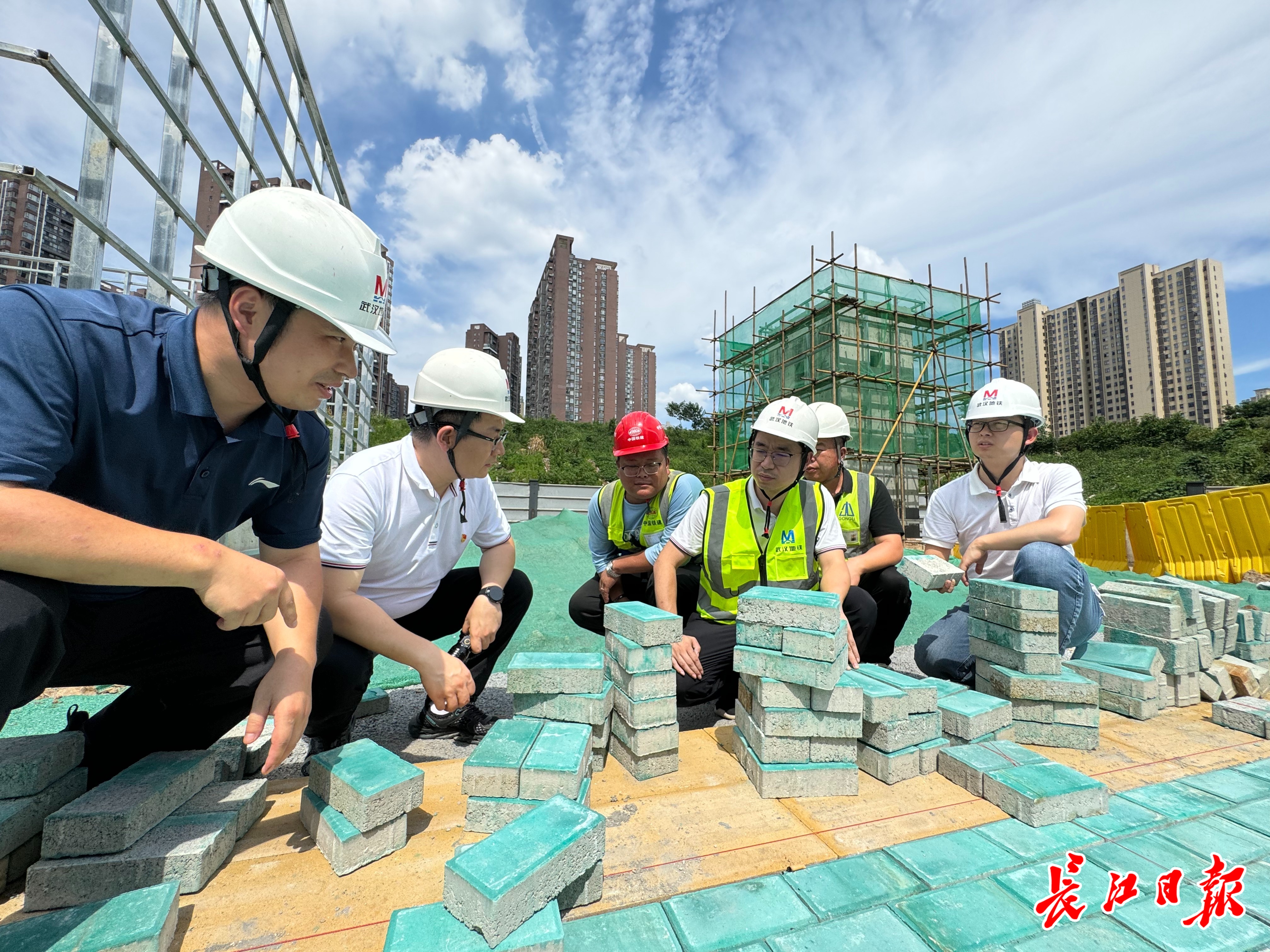 在12号线园林路站,武汉地铁股份有限公司建设二公司党支部党员检查站外步砖铺设。记者陶常宁 摄