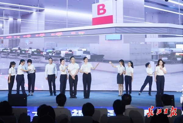 报告会上的情景演绎环节展示企业办事从原来“跑窗口”到如今“掌上办”。长江日报记者彭年 摄