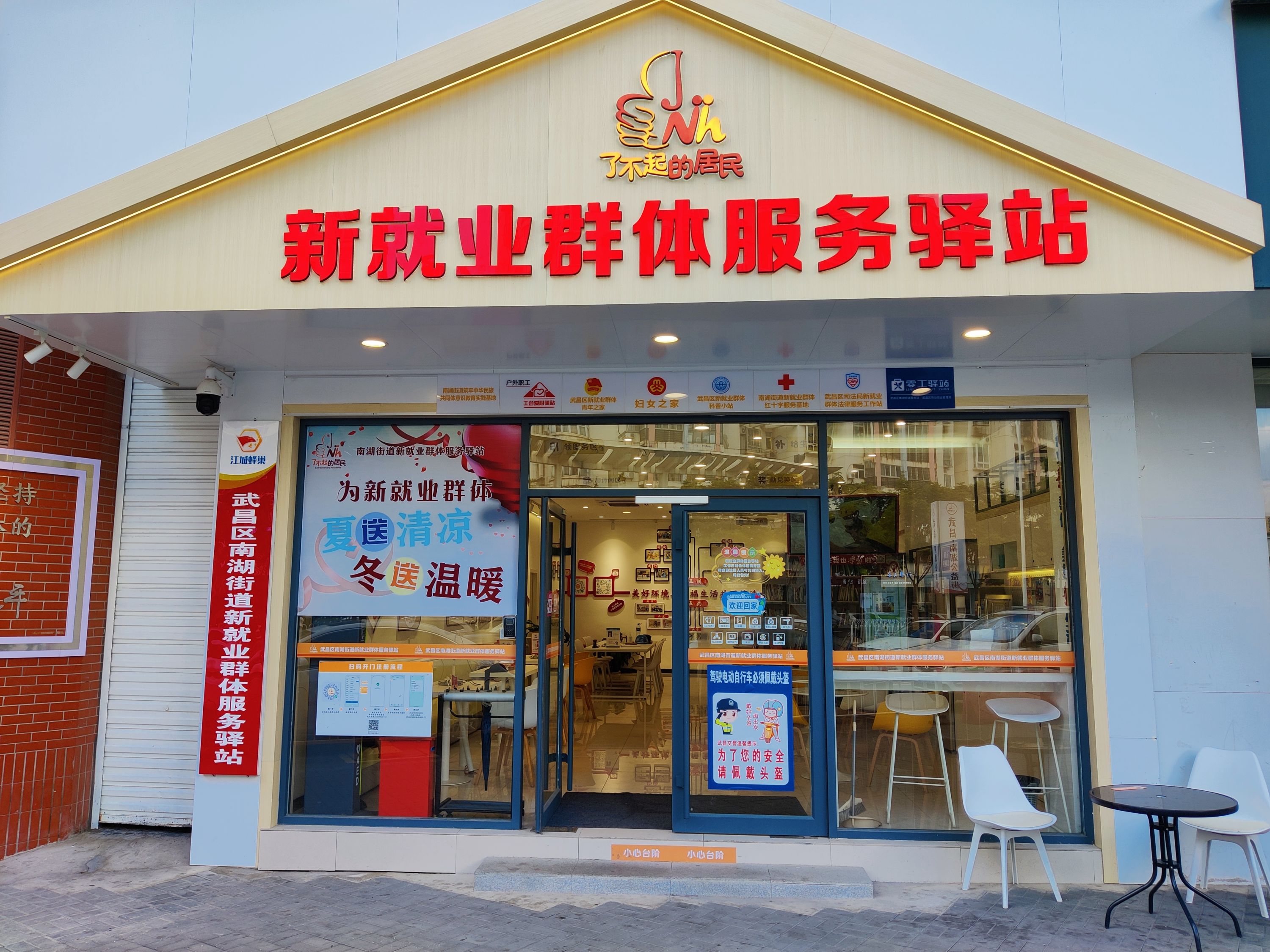 王勇提出,他日常管理150名专送骑手,站点却仅有30平方米,大家都希望能有个地方落脚。2个月后,在街道党工委的发动下,泛悦坊商圈业主方主动提出无偿提供120平方米的临街门面,全市首家新就业群体服务驿站“江城蜂巢”就此建成开放。