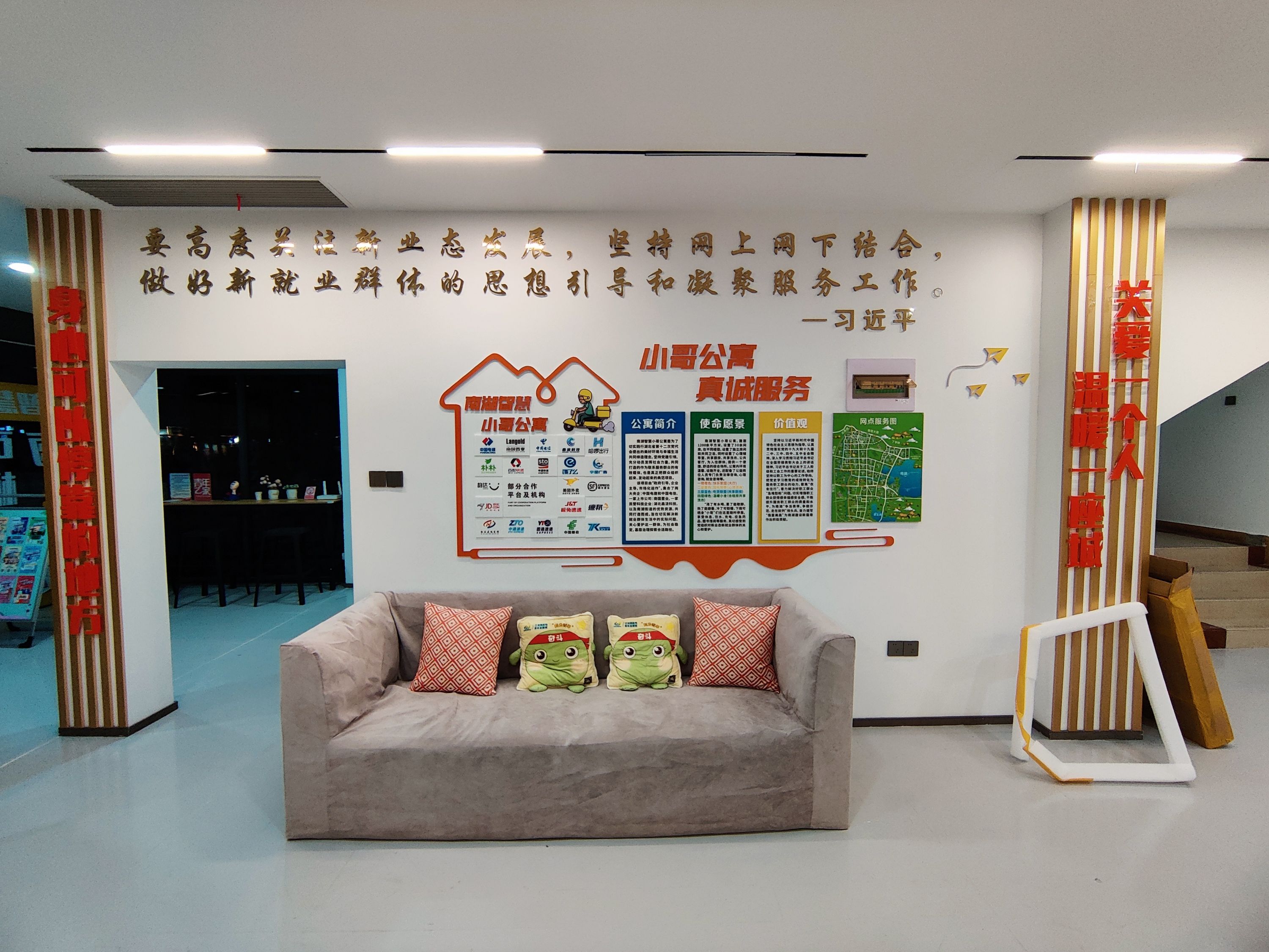 “一楼公共区域常坐满闲聊的兄弟,三楼共享厨房飘着饭香,四楼洗衣房像回到了学生时代。”25岁的骑手张靖觉得,跟一般的公寓相比,这里更有人情味。今年暑假,他把妻子和4岁的儿子接到了自己租住的公寓单间,“这比从前独来独往的生活好多了,家人住得舒心,我跑单也安心”。