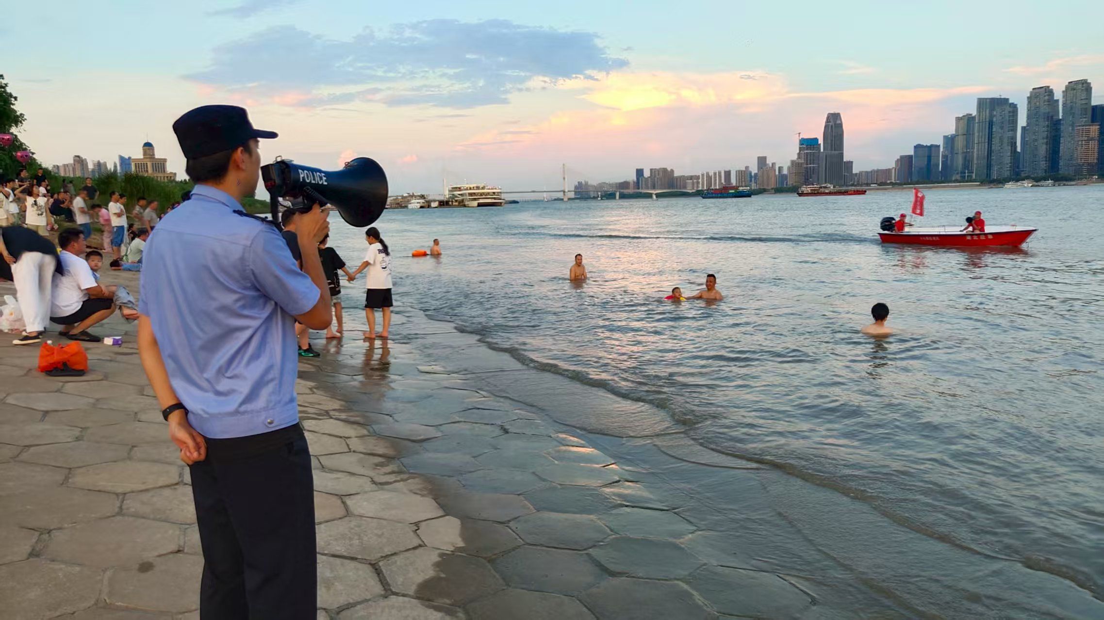 武汉公安温馨提醒游客,江水流湍急藏暗涌,野泳侥幸要不得,平安比清凉更重要。