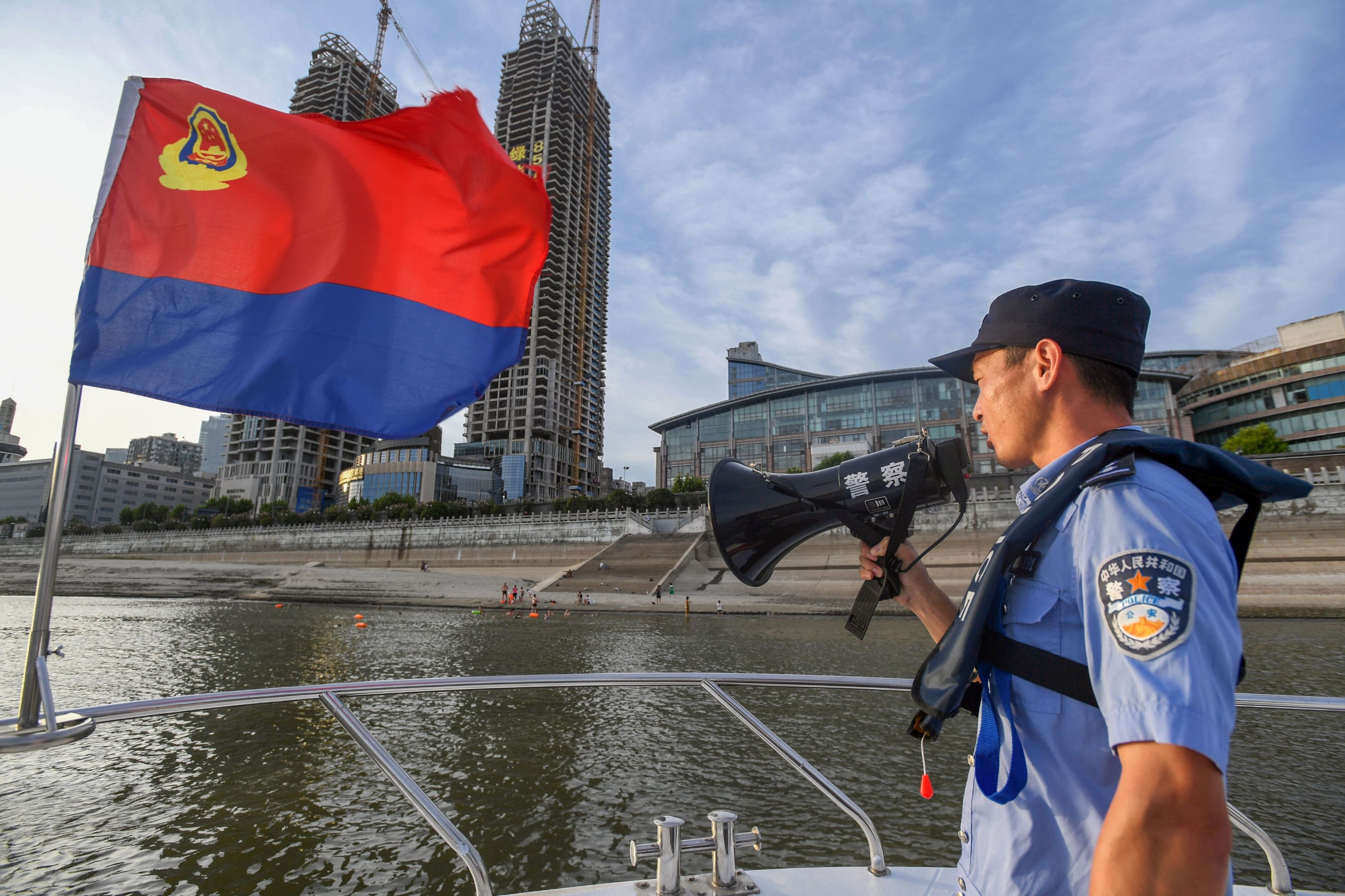 “江中间水流湍急,请勿靠近深水区!”夏日午后,长江、汉江沿线的游泳集中区域,总能听到警用无人机的空中喊话声。