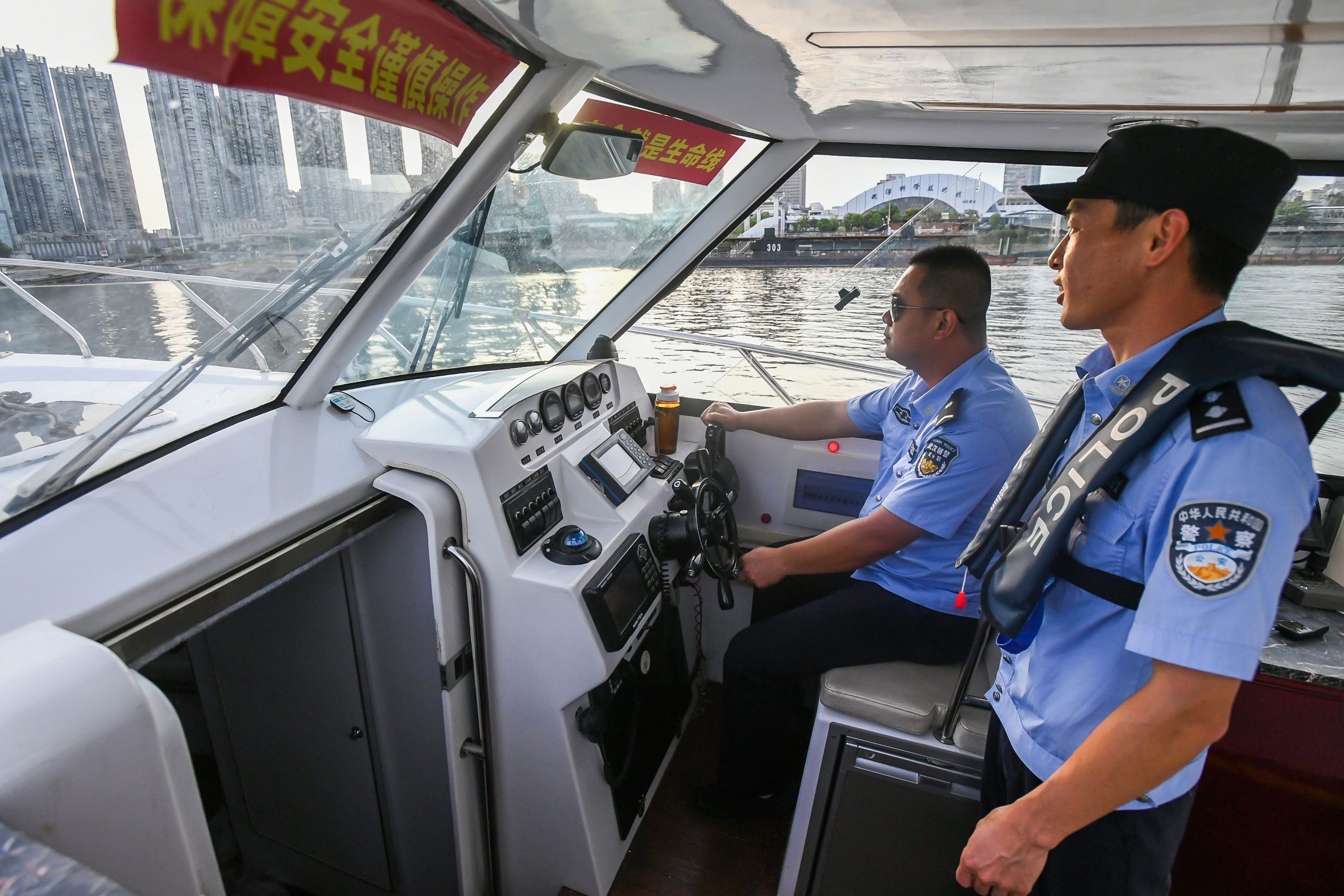 武汉水警江边巡逻现场。通讯员武龚萱摄
