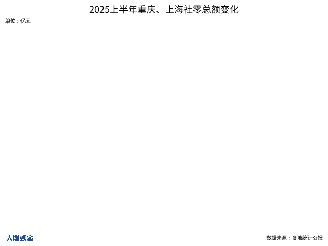 上半年,重庆和上海的社会消费品零售总额(简称“社零总额”)分别为8300.37亿元、8260.41亿元。