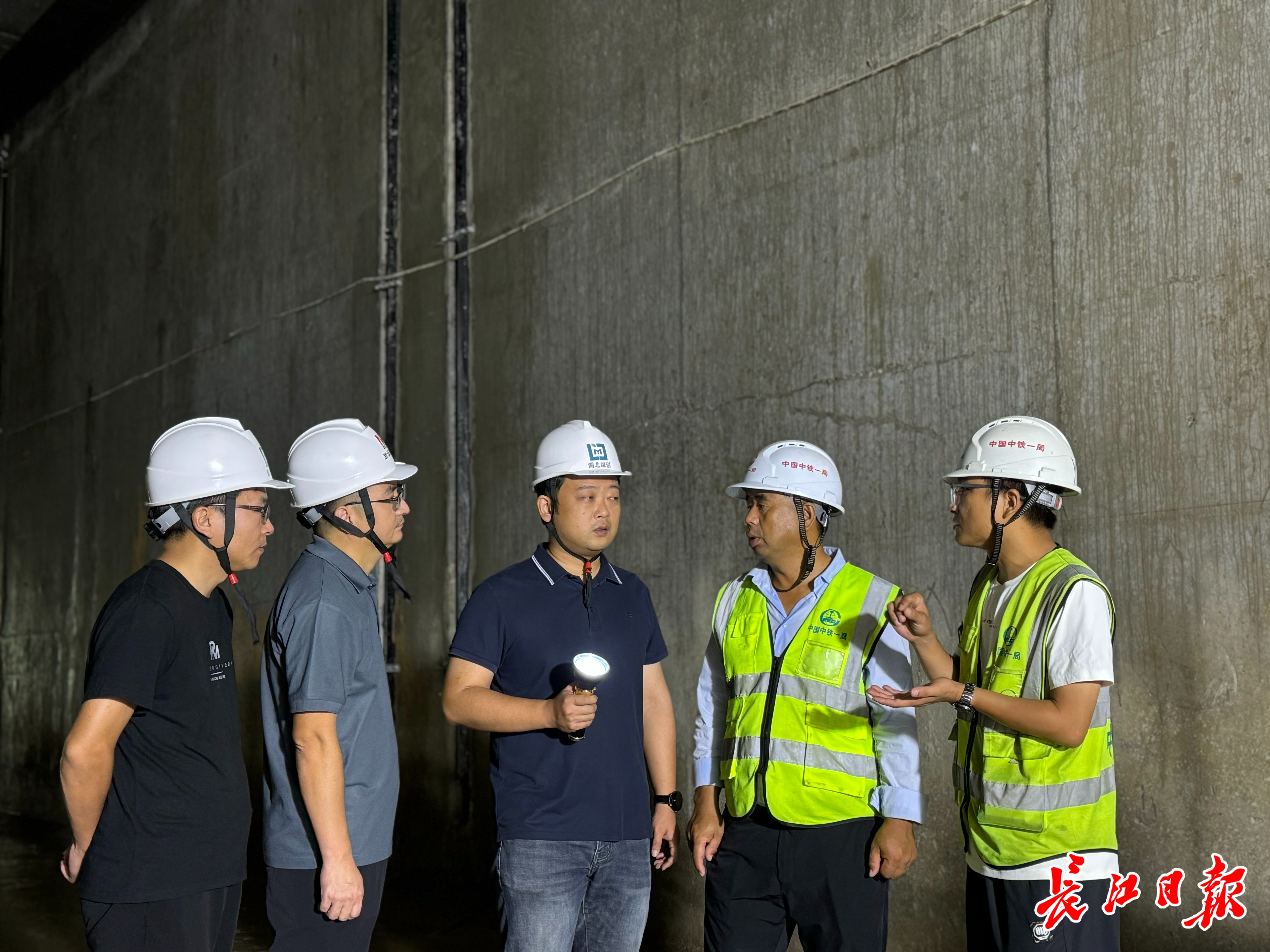 刘智勇(中)向施工单位了解装配式轨顶风道安装情况。长江日报记者陶常宁摄