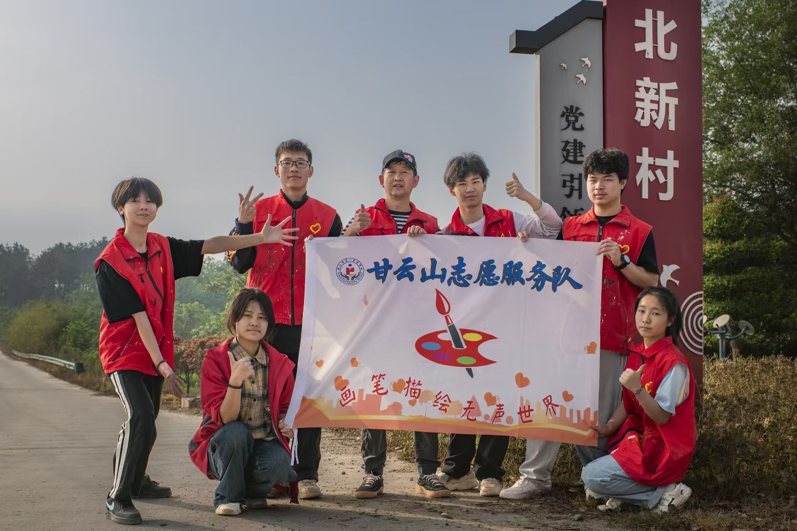 2023年12月,甘云山牵头组建起了一支“甘云山志愿服务队”,召集了学校教师、学生及社会志愿者等30余人投身公益事业。团队利用课余时间开展校园环境美化工程,完成集装箱彩绘、墙面艺术创作、地面游线图案绘制、停车网格线规划等项目,将原本素白的大幅墙面转化为充满教育温度的校园景观,为特殊教育环境增添了人文关怀的亮色。