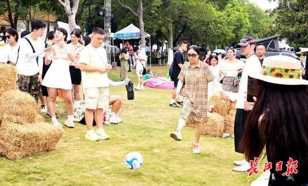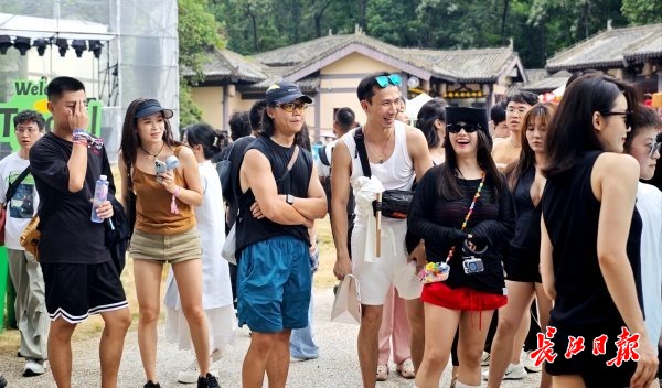海内外游客相聚在一起,在“跳东湖”现场结为青春朋友。