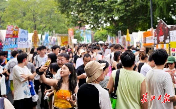 市集的热度更直观反映在消费数据上。2025年,“跳东湖”引入110余个品牌构建消费矩阵后,单日客流量突破3万人次,周边民宿、酒店的预订率较平日翻了一倍。“我们提前一个月就订好了湖景房,就为感受这种‘跳完水直接躺平’的快乐。” 来自杭州的游客周女士笑着说,她刚在创意市集买了一枚“跳东湖”徽章,“这种有城市特色的文创,比普通纪念品更有意义”。