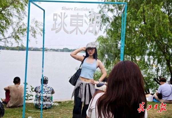 在市集区,来自伊朗的玛利亚正举着手机拍个不停。这位在华中科技大学读了四年书、即将入读武汉大学研究生的姑娘,今年是第一次参加“跳东湖”:“氛围特别好!有很多东西都让我很好奇,跳东湖、音乐、舞蹈,大家都在尽情释放热情!” 她指着涂鸦签名墙上的一行名字说:“我还在签名墙里找到了同乡人!” 玛利亚告诉记者,她最喜欢的是岸边的尊巴舞区:“音乐一响,大家不管认识不认识都跟着跳,这种快乐很容易感染人。如果有机会,以后我也想跳一次东湖!”
