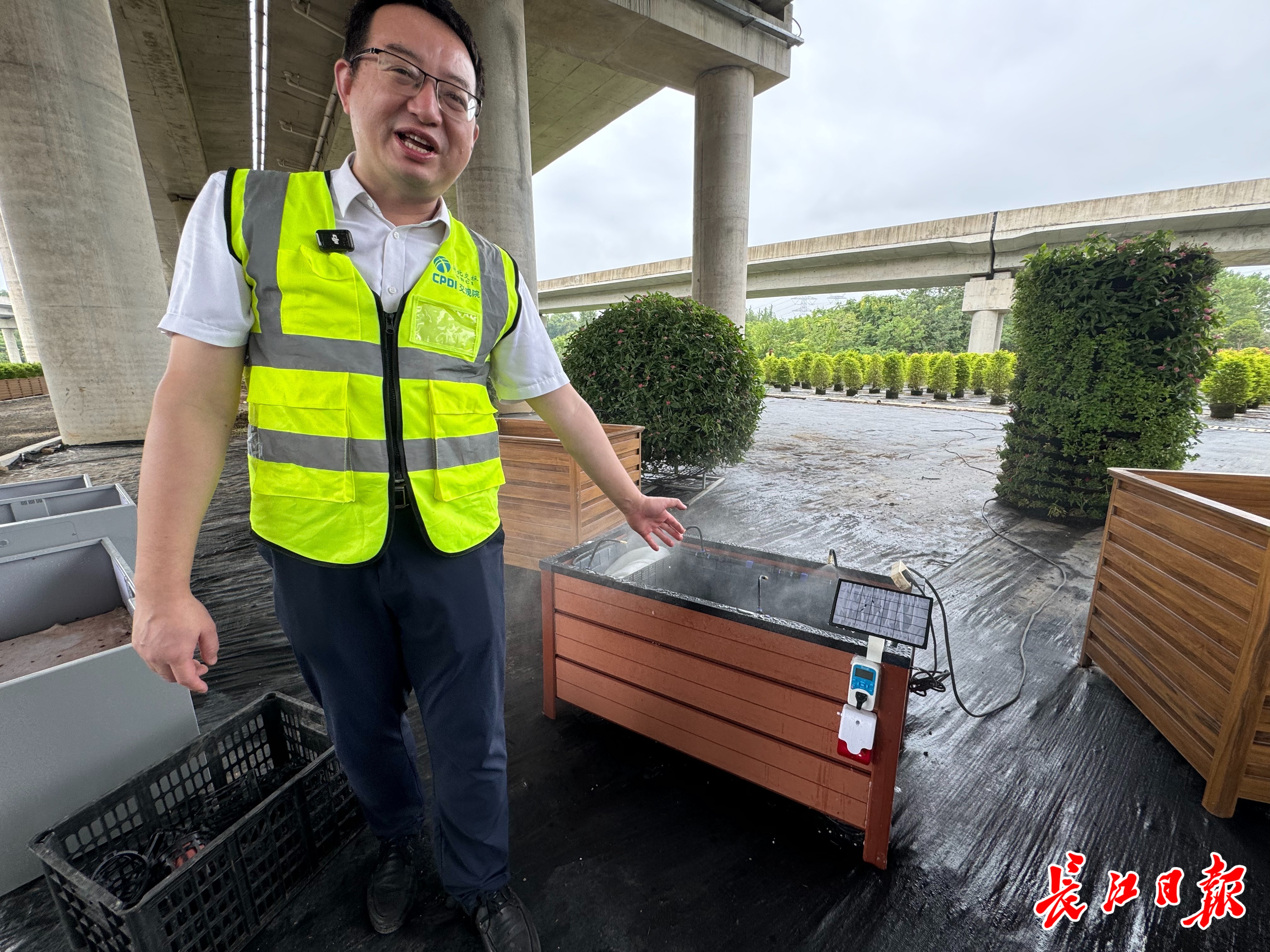 位于东山收费站的智慧花箱,可自动浇灌。长江日报记者陶常宁摄