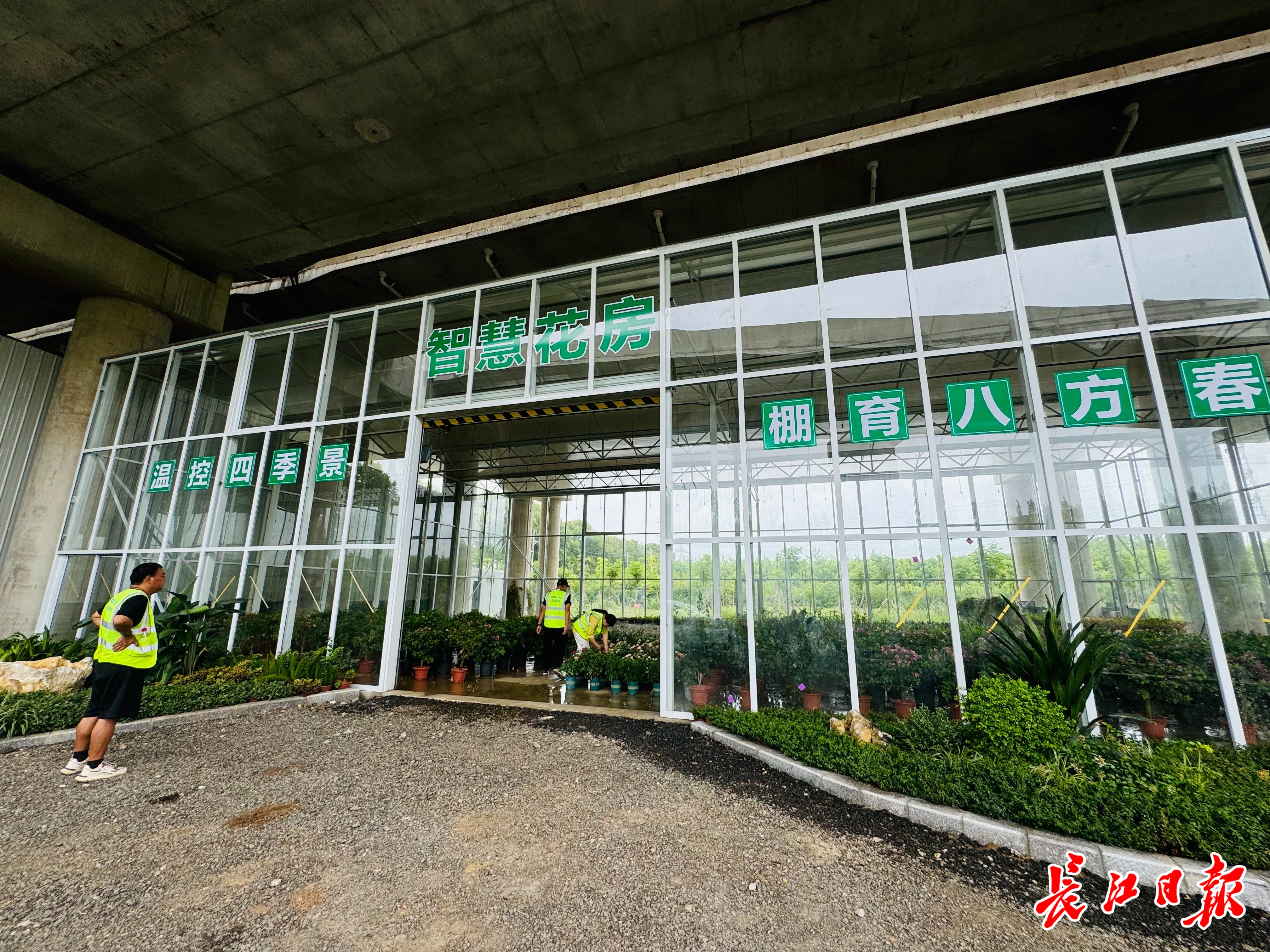 “基地建有花境苗木生产车间、智慧花房,相当于为花建了一座‘医院’。”湖北省交通规划设计院东山花境苗木生产基地项目负责人聂天彪介绍,从高速换下来的受损景观植物会送到基地“治疗”,经浇水、施肥、修剪,一个星期就从智慧花房出来,来年还能接着用。