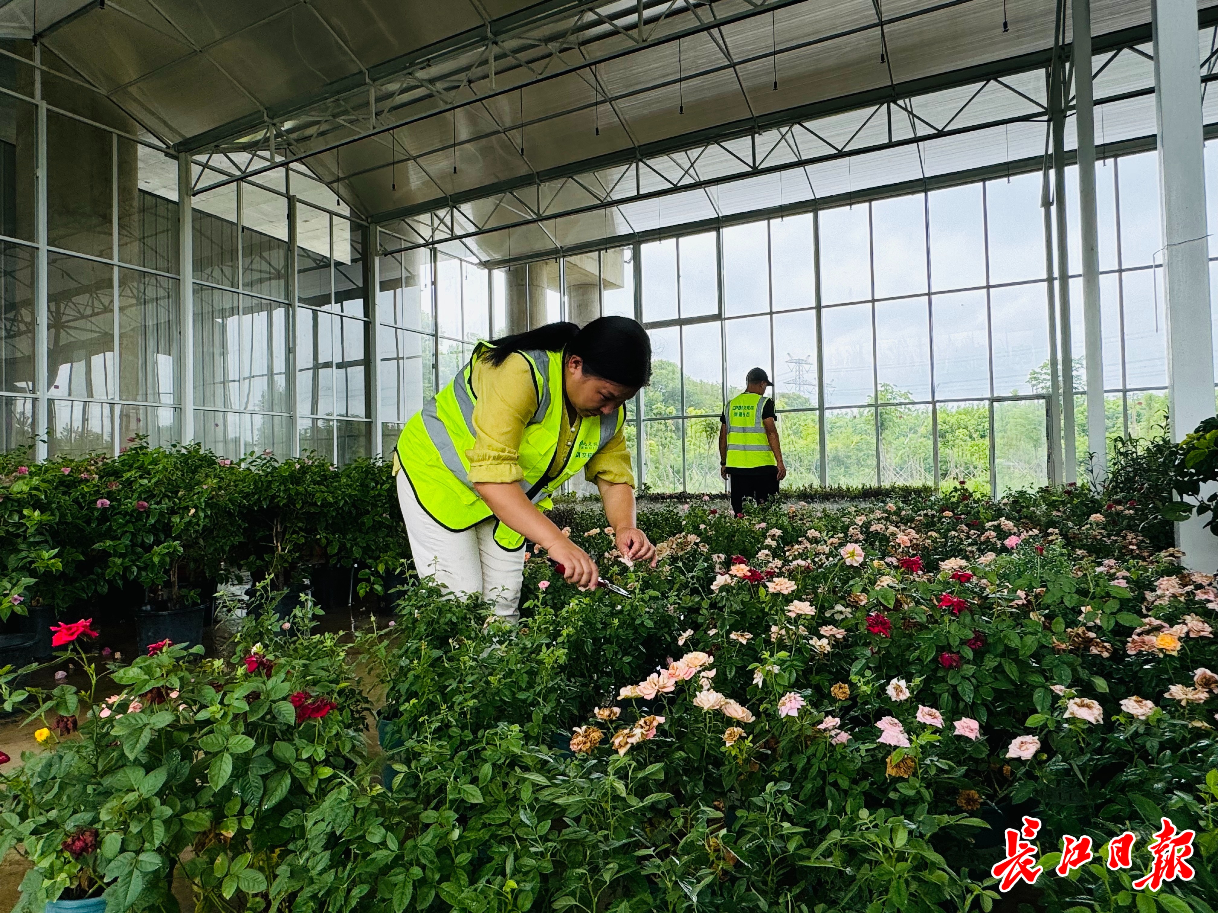 工人在智慧花房修剪月季。长江日报记者陶常宁摄