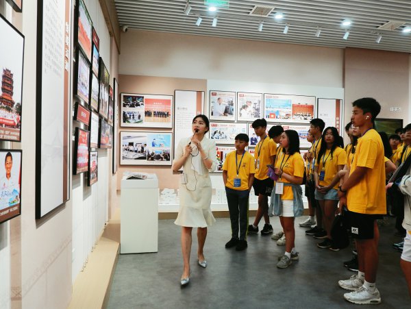 来自日本、印度尼西亚、新西兰等国家的30名华裔青少年营员及领队老师参观武汉侨史展厅。实习生骆海胜 摄
