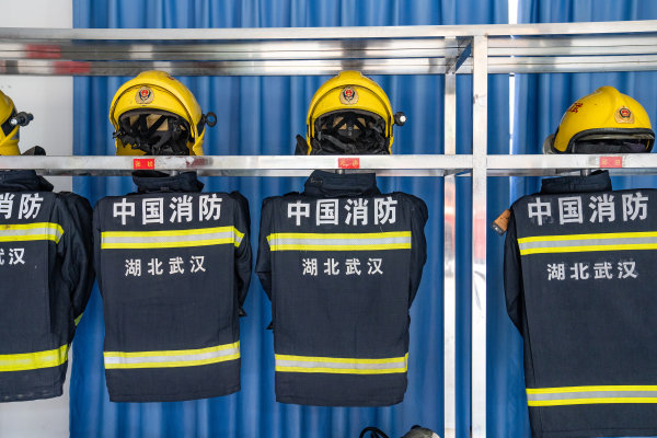 邓勇生前穿着的消防战斗服依然挂在武汉市硚口区常码头专职小型消防站的一号战位上。汉消供图