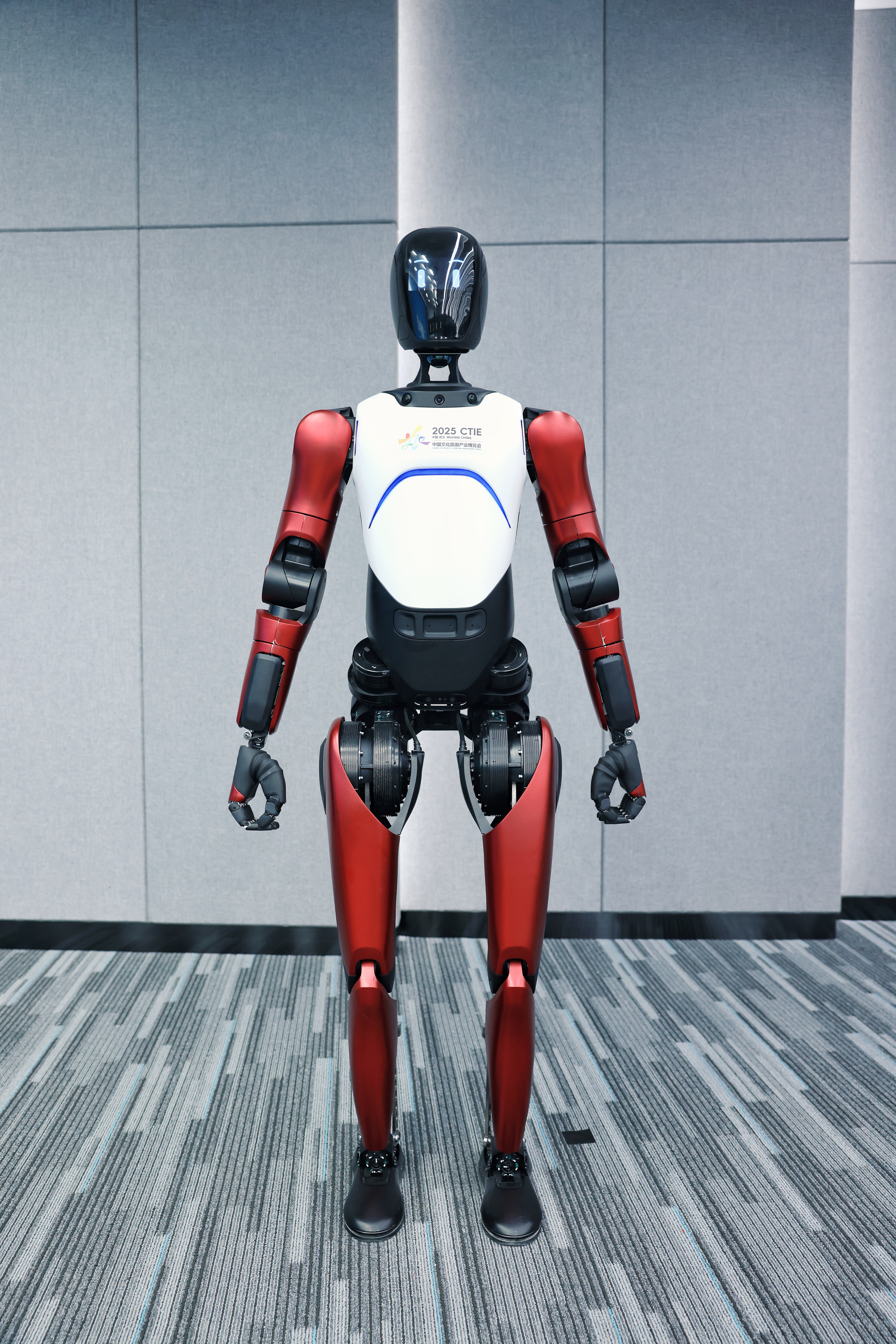 这台人形机器人身高1.7米,身体为炫酷的银色+暗红色,面部可以做出虚拟表情,还能与人智能对话。据介绍,这台机器人为武汉光谷东智具身智能技术有限公司自主研发的“光子”系列机器人。它是东智为交互服务打造的通用人形机器人,支持多语种和中国方言对话。目前,可以实现导览、讲解以及多种互动功能。