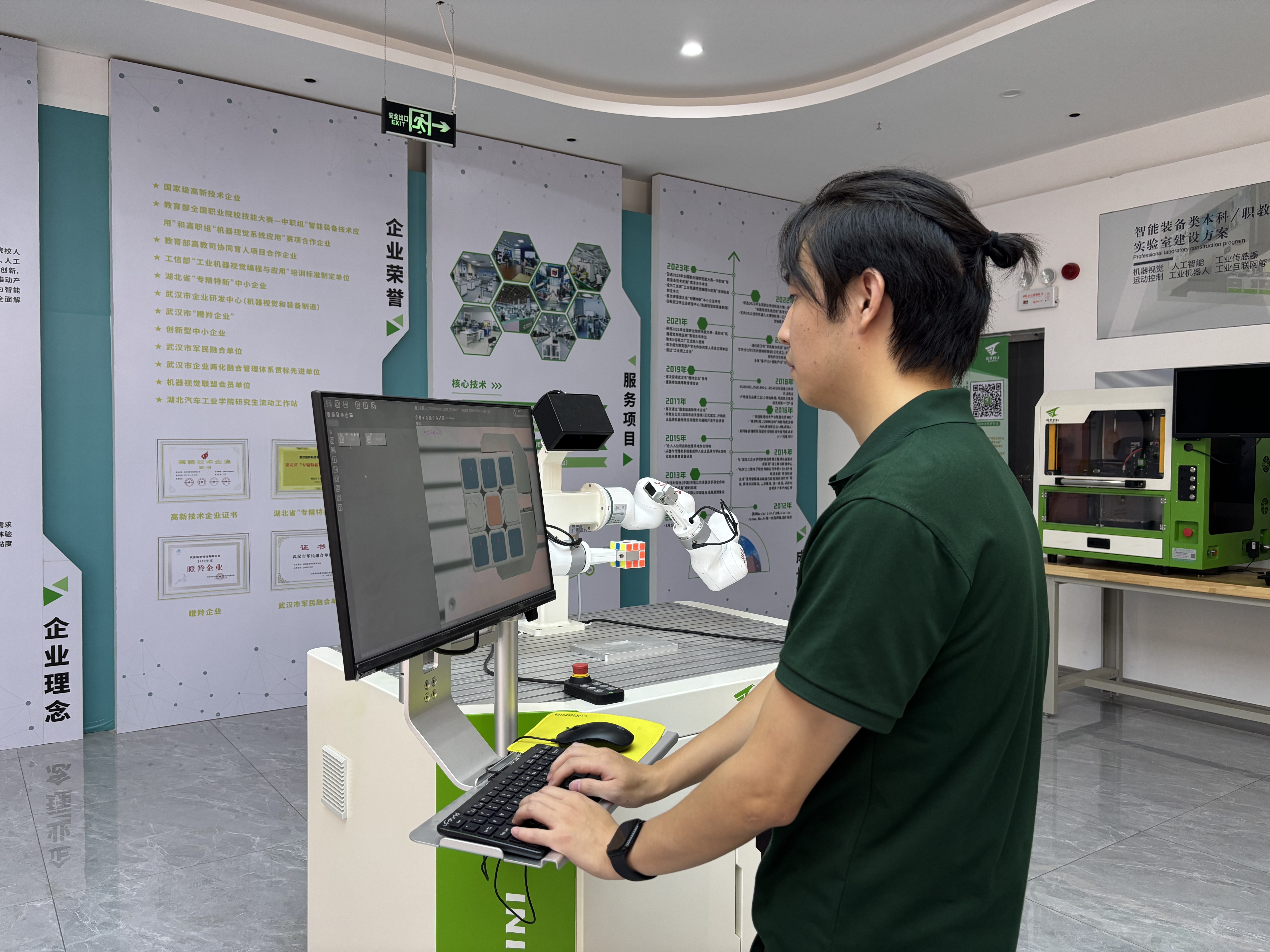2011年筑梦科技在汉成立之初,原本主要为工业企业开发机器视觉应用和自动化应用解决方案。“我们调研市场发现,一些应用型本科和职业院校的实验设备与工业实际差异较大,仅停留于原理或演示型实验设备进行实验,互动性相对较低,与真实工业现场关联也不强。”钟明介绍,在产教融合的市场机遇下,从2020年开始,筑梦科技结合自身对院校人工智能和智能相关专业人才培养的需求、服务企业现实生产的案例经验,开始针对性地研发各类机器人实训平台,把“模拟生产线”带入校园。