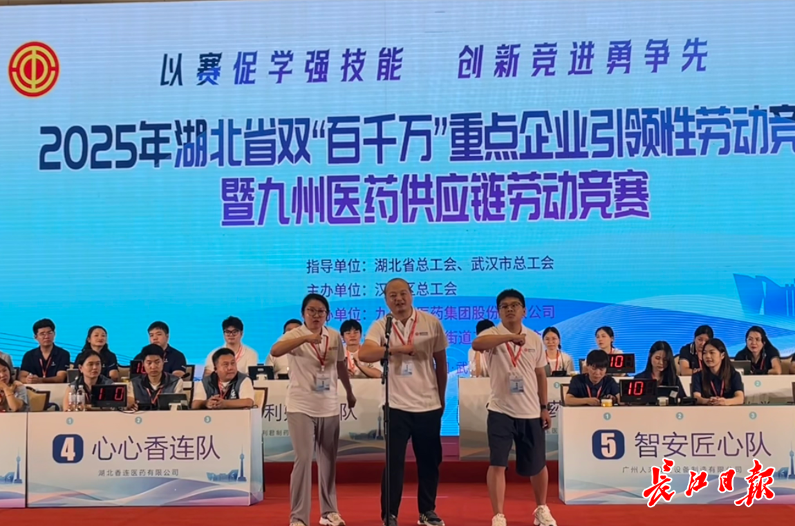 8月21日下午,“以赛促学强技能,创新竞进勇争先”2025年湖北省双“百千万”重点企业引领性劳动竞赛暨九州医药供应链劳动竞赛,在汉阳区九州通医药集团有限公司(以下简称“九州通医药集团”)举行。本次竞赛汇集了国药集团中联药业、人福药业、华润三九医药、健民药业集团等16家产业链上下游知名企业的优秀职工代表同台竞技。竞赛内容紧密结合供应链核心环节,设置了涵盖药品知识、仓储物流、质量控制、风险防控及特定场景应用等多个领域的技能比拼项目。